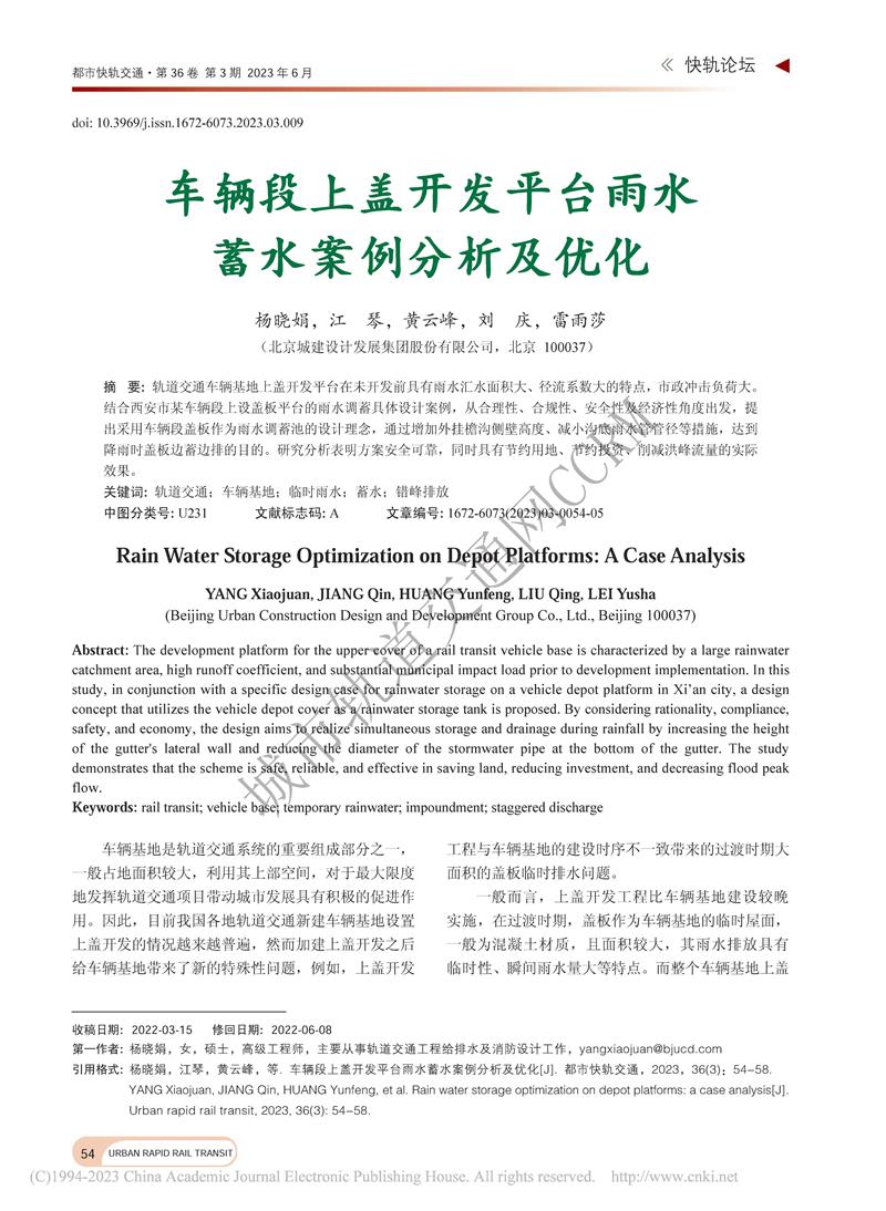 车辆段上盖开发平台雨水蓄水案例分析及优化