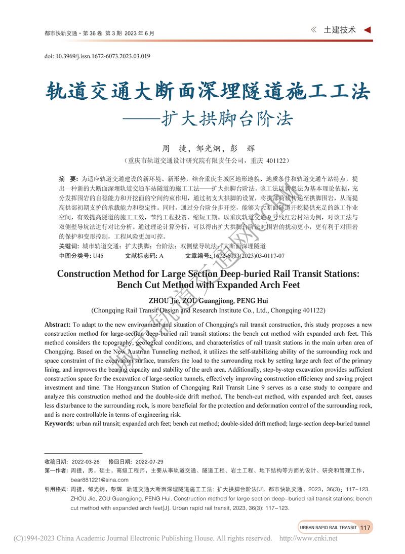 轨道交通大断面深埋隧道施工工法——扩大拱脚台阶法