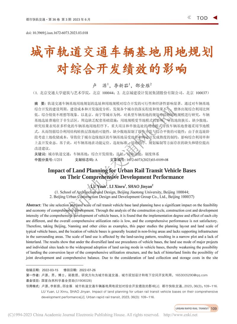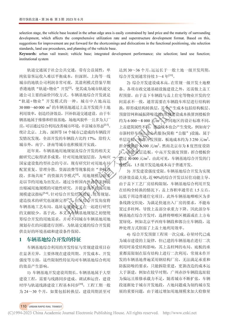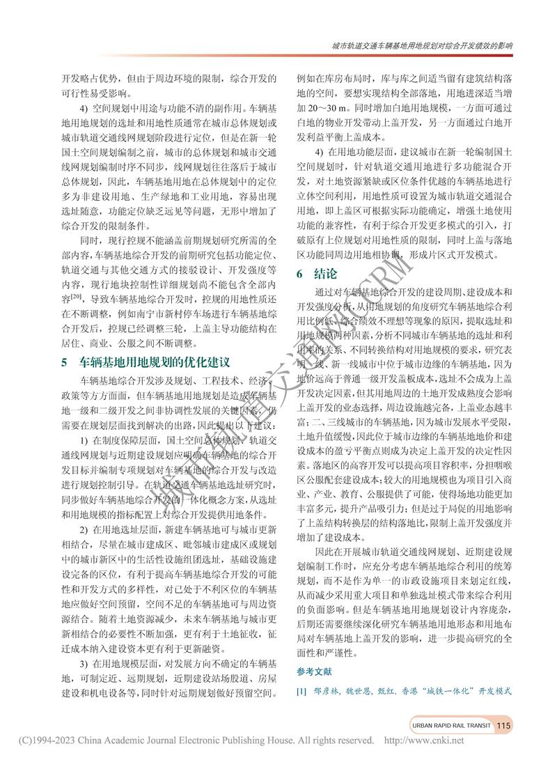 城市轨道交通车辆基地用地规划对综合开发绩效的影响