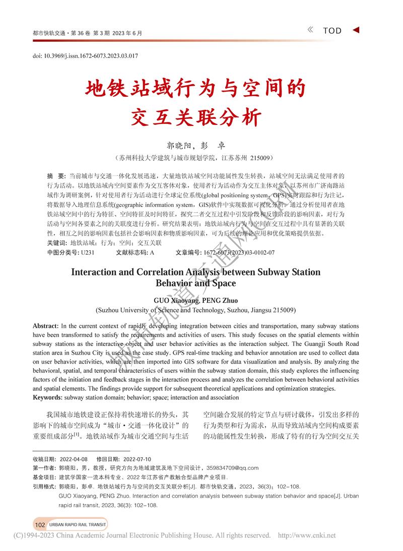 地铁站域行为与空间的交互关联分析