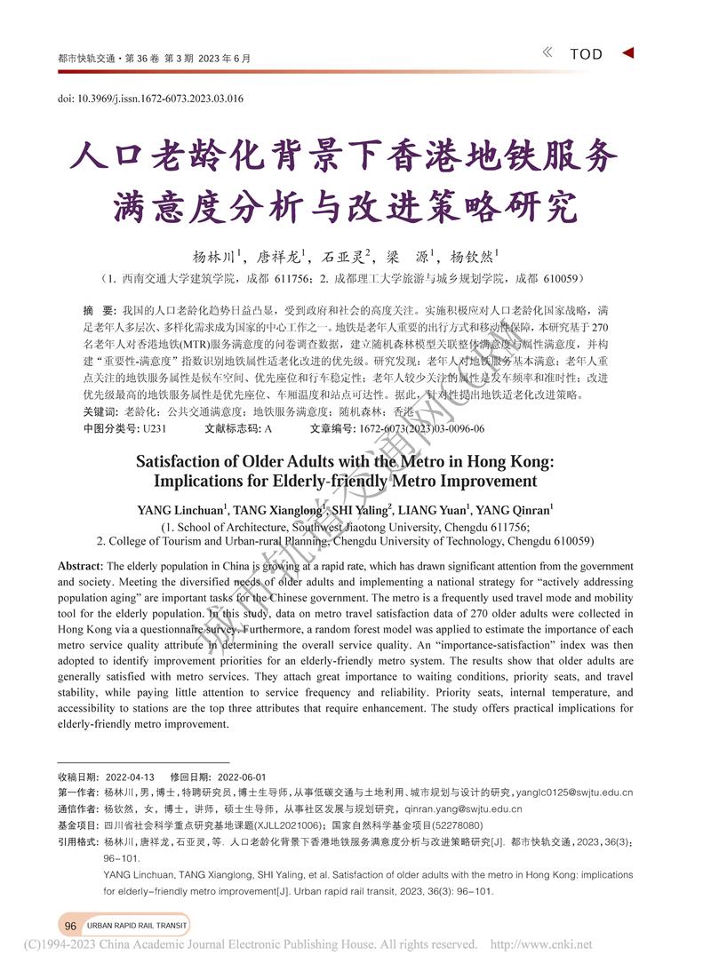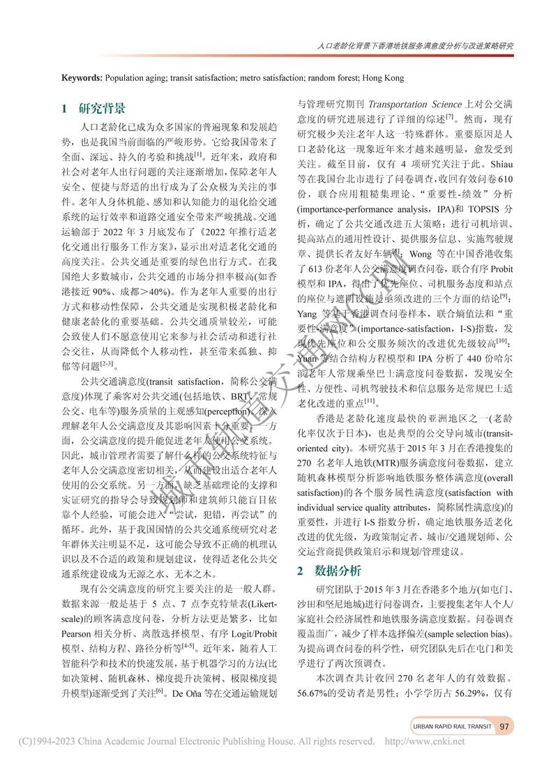 人口老龄化背景下香港地铁服务满意度分析与改进策略研究