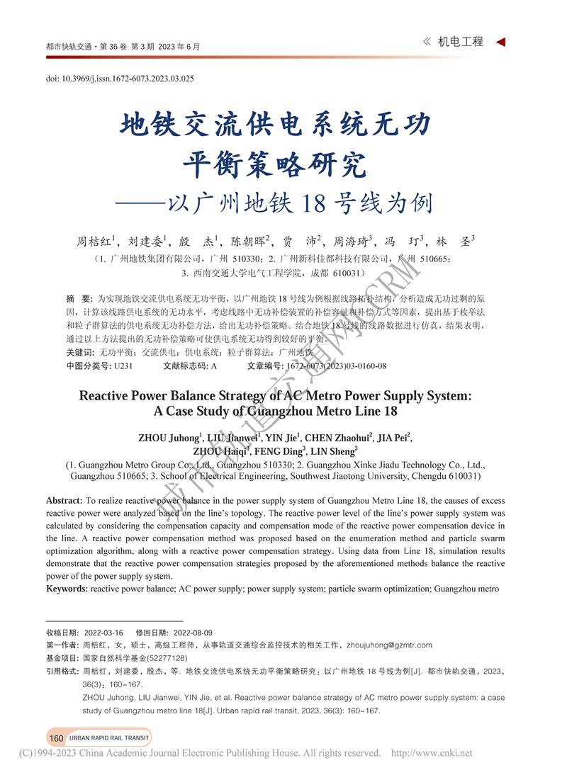 地铁交流供电系统无功平衡策略研究 ——以广州地铁 18 号线为例