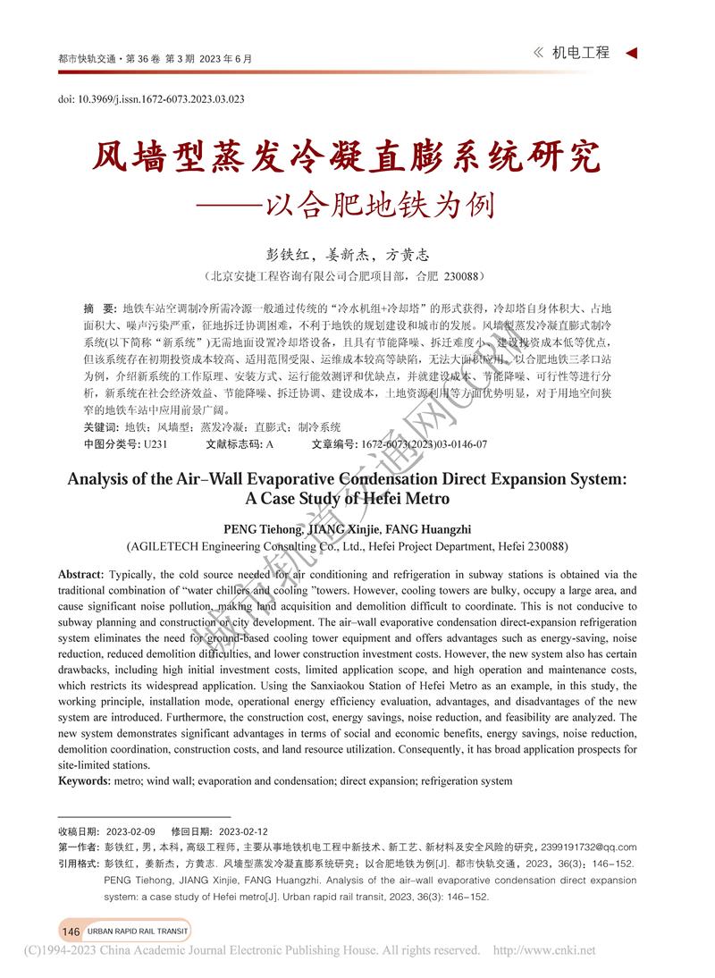 风墙型蒸发冷凝直膨系统研究——以合肥地铁为例