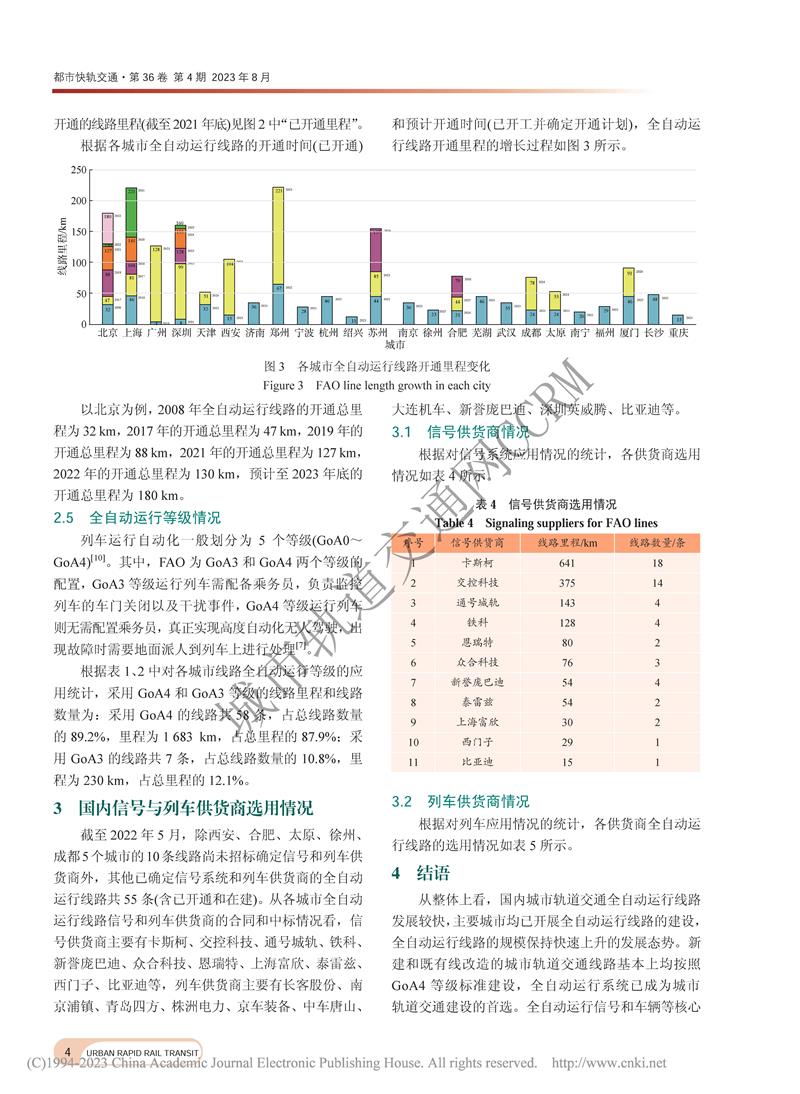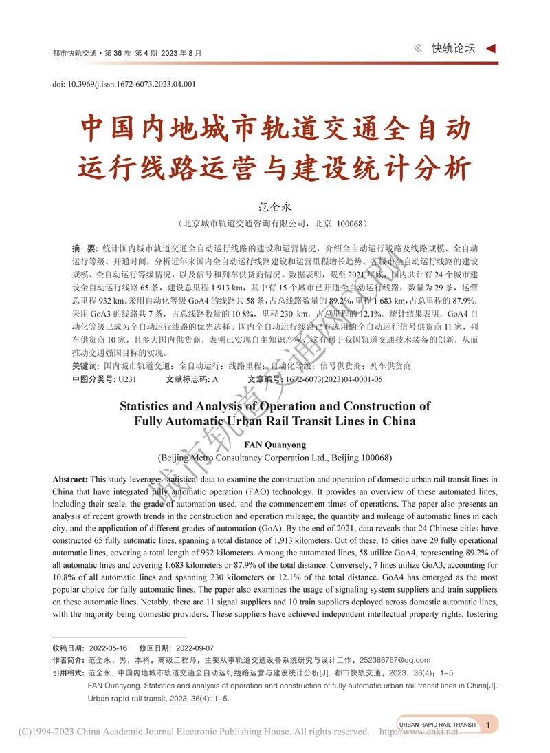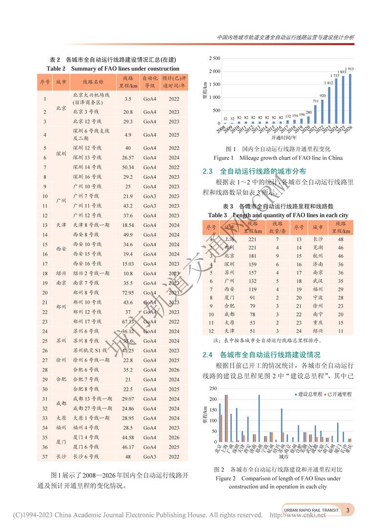 中国内地城市轨道交通全自动运行线路运营与建设统计分析