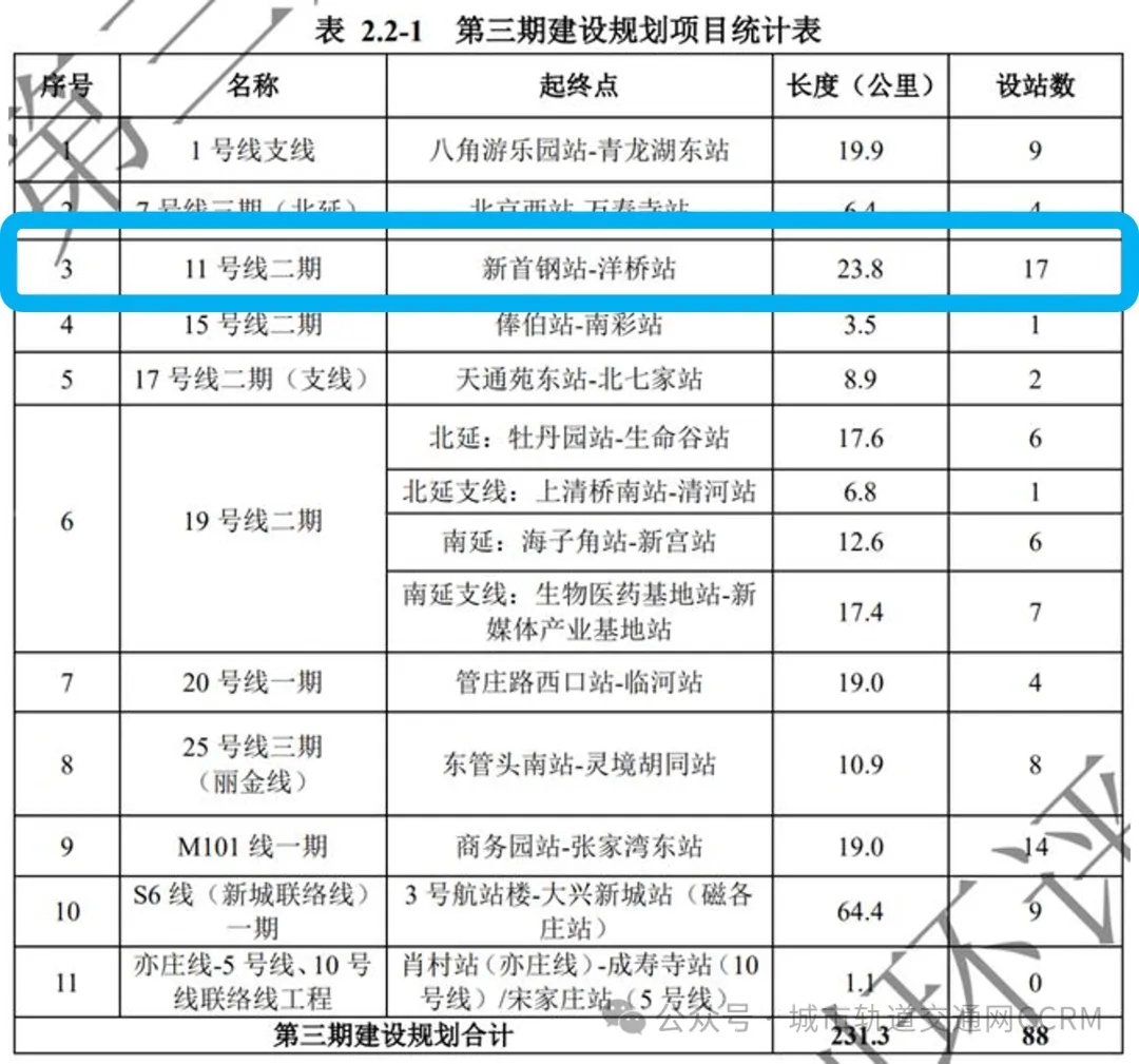 在此前三期建设规划的环评公示中,11号线二期是西起石景山新首钢站,东至丰台区洋桥站,总长23.8公里,设站17座。
