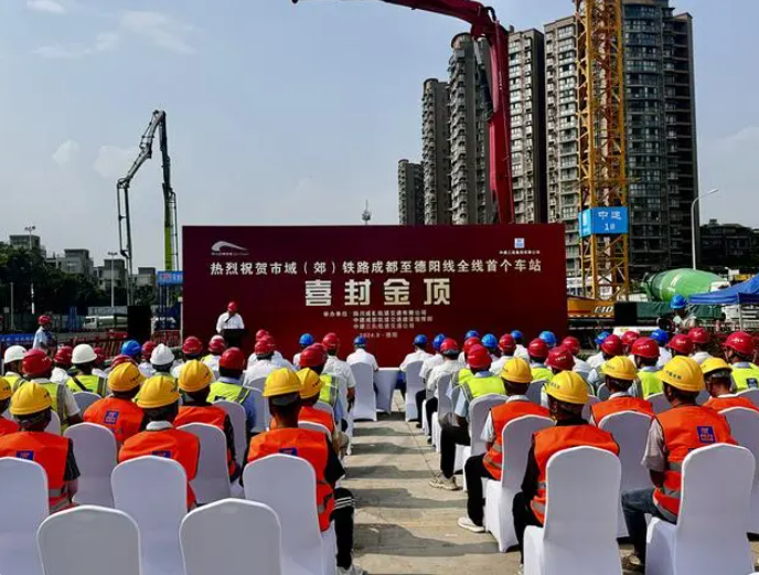 8月28日上午,随着最后一方混凝土浇筑完成,标志着市域(郊)铁路成都至德阳线工程(以下简称“成德线”)五洲广场站主体结构顺利实现封顶,为后续盾构下井始发等施工提供了条件,拉开了全线地下车站全面冲刺结构施工的序幕。