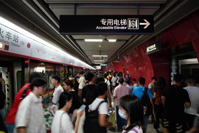 随着各大院校、中小学开学,为期62天的暑运也正式画上句号,据后台数据显示,7月1日至8月31日,地铁线网共安全运客5.81亿人次,日均客运量达937万人次;4条城际线路共发送旅客532.2万人次,日均发送8.6万人次;2条有轨电车线路共运客196.76万人次,日均3.17万人次。 今年暑运地铁线网的客流较6月日均884万人次增长了6%,与去年同期基本持平,期间共有12天超千万客流,而单日最高客运量出现在7月19日,达1067万人次。日均客运量超百万的单条线路共三条,其中,最高的是三号线(含三北线)194万人次,其后分别为二号线118万人次、五号线111万人次。邻近热门景点的车站客流量也有明显增加,如广州塔站、动物园站,日均客流分别为6.7万人次、2.6万人次,较暑运前(6月)分别增长了60%、45%。为满足广大市民逛街、旅游等暑期出行需求,广州地铁通过提升重点线路运力、高峰期加强客运服务保障力量、组织内外部志愿者5000余人次加强出行指引等举措,保障客流组织安全有序。据不完全统计,暑运期间仅服务热线接到乘客反映的拾金不昧、助人为乐等好人好事达575件。