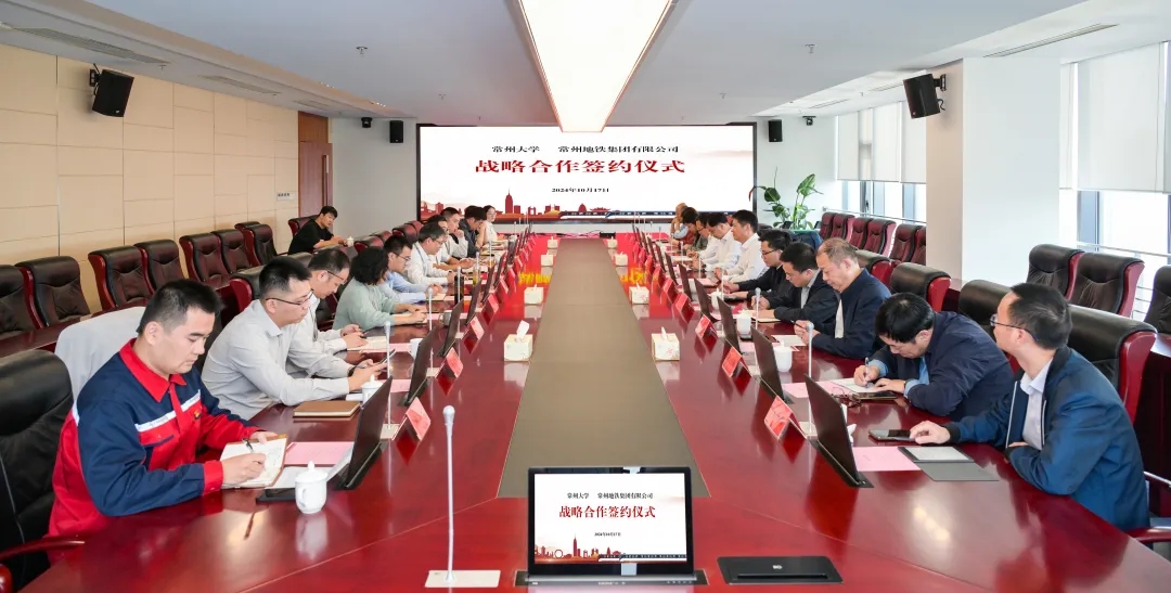 10月17日,常州地铁集团与常州大学举行战略合作协议签约仪式。常州大学党委副书记、校长陈海群,副校长晏成林带队来地铁集团交流洽谈。地铁集团党委书记、董事长叶军,党委副书记、总经理徐卿,副总经理宋杨,总经理助理许正宇出席。