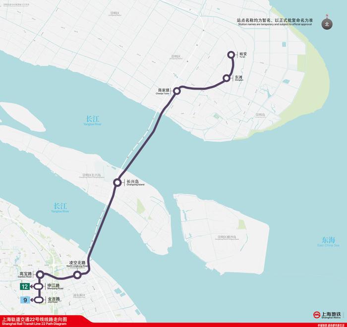 上海轨道交通22号线(崇明线)示意图。图片来源:上海地铁