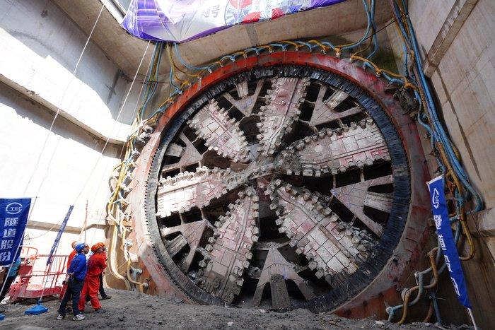 上海地铁特别定制了两台超大直径(刀盘直径为13.5米)泥水平衡盾构,分别从位于长兴岛的南北两座工作井始发推进,在近长江入海口的位置穿越长江。其中,由“申通号”盾构向浦东方向推进南港段隧道,长7.739公里;由“申崇号”盾构向崇明岛方向推进北港段隧道,长9.024公里。