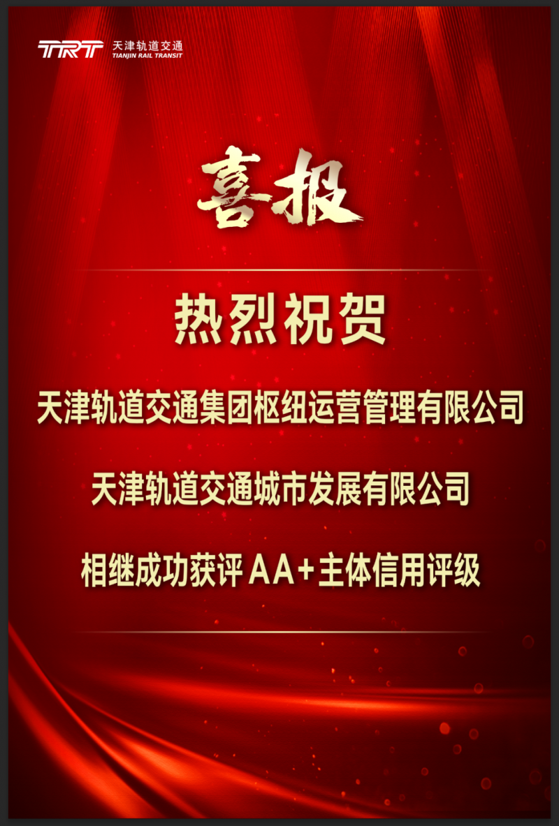 近半年以来,天津轨道交通集团所属全资子公司“天津轨道交通集团枢纽运营管理有限公司和天津轨道交通城市发展有限公司”相继成功获评AA+主体信用评级。
