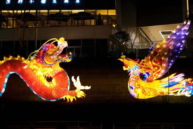 水上花灯在湖边形成倒影,还有龙凤呈祥、齐天大圣等等,带来了全新的感官震撼。