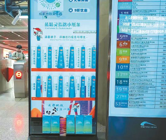 此外,为了让外籍乘客地铁出行更便利,成都地铁在线网车站设置进出站、换乘、上下车等全路径中英文导向标识指引,实现车站及列车双语广播播报,方便乘客实时获取乘车信息,合理规划出行路线和行程。成都东客站、犀浦站等枢纽车站还推出双语版“蓝精灵指路小纸条”,详细标注前往交通枢纽、商圈景点的最优路径,方便乘客快速找到所需信息。