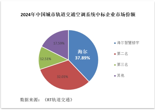 近日,《RT轨道交通》发布2024年中国城市轨道交通空调系统中标数据,TOP3品牌市场占比超80%。其中,从中标项目数、中标金额上看,海尔智慧楼宇均实现了市场第一,市场份额达37.89%。在市场占比再创新高的同时,海尔智慧楼宇已连续7年居行业TOP1。