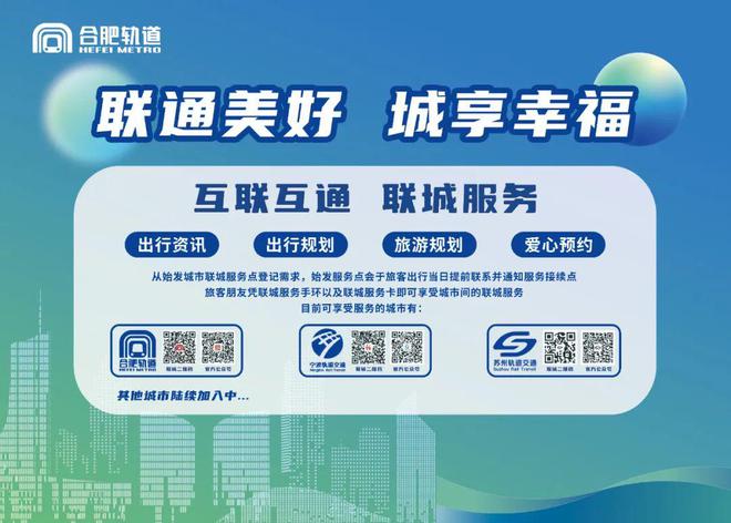 合肥轨道交通始终围绕“我为群众办实事”实践活动,创新服务举措,延伸服务半径,实现“交通一体化”向“服务一体化”的迈进。目前开展“联城服务”的轨道交通单位有合肥轨道交通、宁波轨道交通及苏州轨道交通,其他城市轨道交通将陆续加入中。