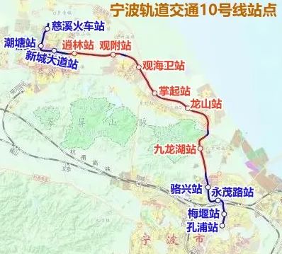 10号线(慈溪线)起于孔浦站,经江北城区、镇海城区、九龙湖镇、龙山、掌起、观海卫、慈溪城区,终至慈溪高铁站。