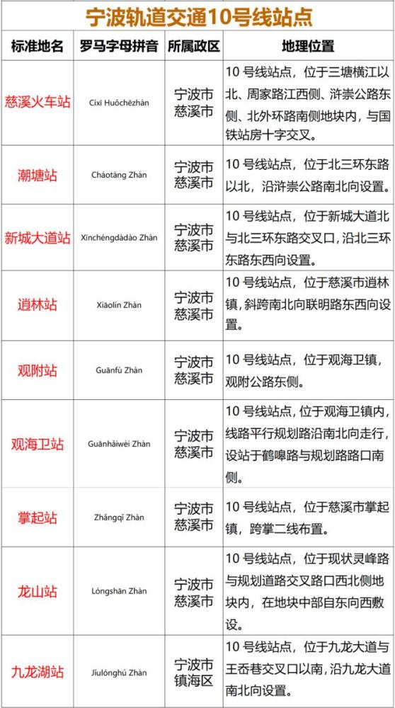 注:公开征集意见时的推荐名称中,“咸祥站”确定为“鄞州咸祥站”,“贤庠站”确定为“象山贤庠站”,“丹城站/人民广场站”确定为“丹城站”,“南部新城站”确定为“滨海大道站”。