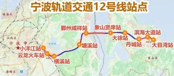 12号线(象山线)起于小洋江站,经云龙、横溪、塘溪、咸祥、贤庠、大徐、象山城区,终至大目湾站。