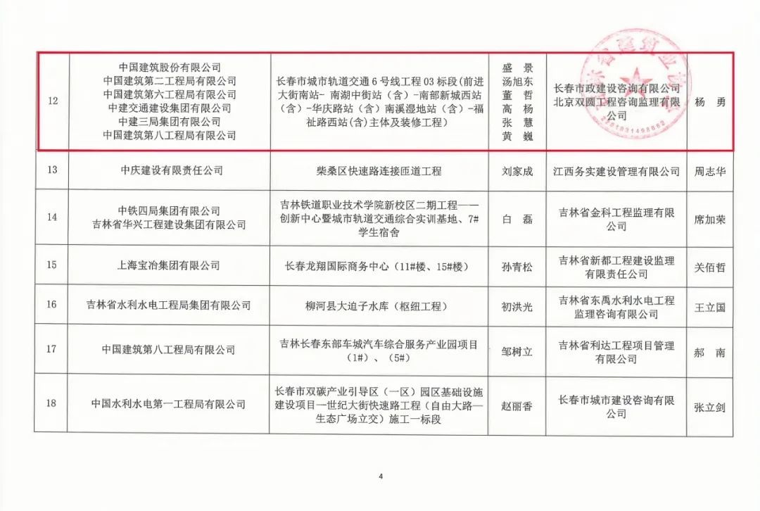 由中建股份牵头,与中建二局、中建三局、中建六局、中建八局、中建交通组成联合体中标的长春轨道交通6号线03标段荣获2024年度吉林省建设工程省优质工程“长白山杯”奖项,这是该项目荣获长春市优质工程奖“君子兰”杯后增添的又一荣誉。 长春轨道交通6号线全长29.6千米,共设车站22座,换乘站9座,是长春市重要城市基础设施和民生项目,通车后,为长春市“双心、两翼、多组团”的城市空间结构提供强有力的交通基础,对助力长春市区域经济发展具有重要意义。
