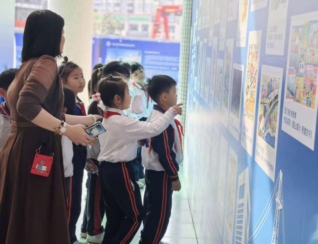 中国青年报客户端讯联通广州、中山两地的南珠(中)城际项目施工中的盾构机是如何向前掘进的?一场别开生面的轨道交通科普展近日在广东省中山市石岐第一小学开展,图文科普和互动性的实物展示,吸引了师生驻足观看,有同学直呼“大开眼界”。 同学们观看盾构机模型。受访者供图