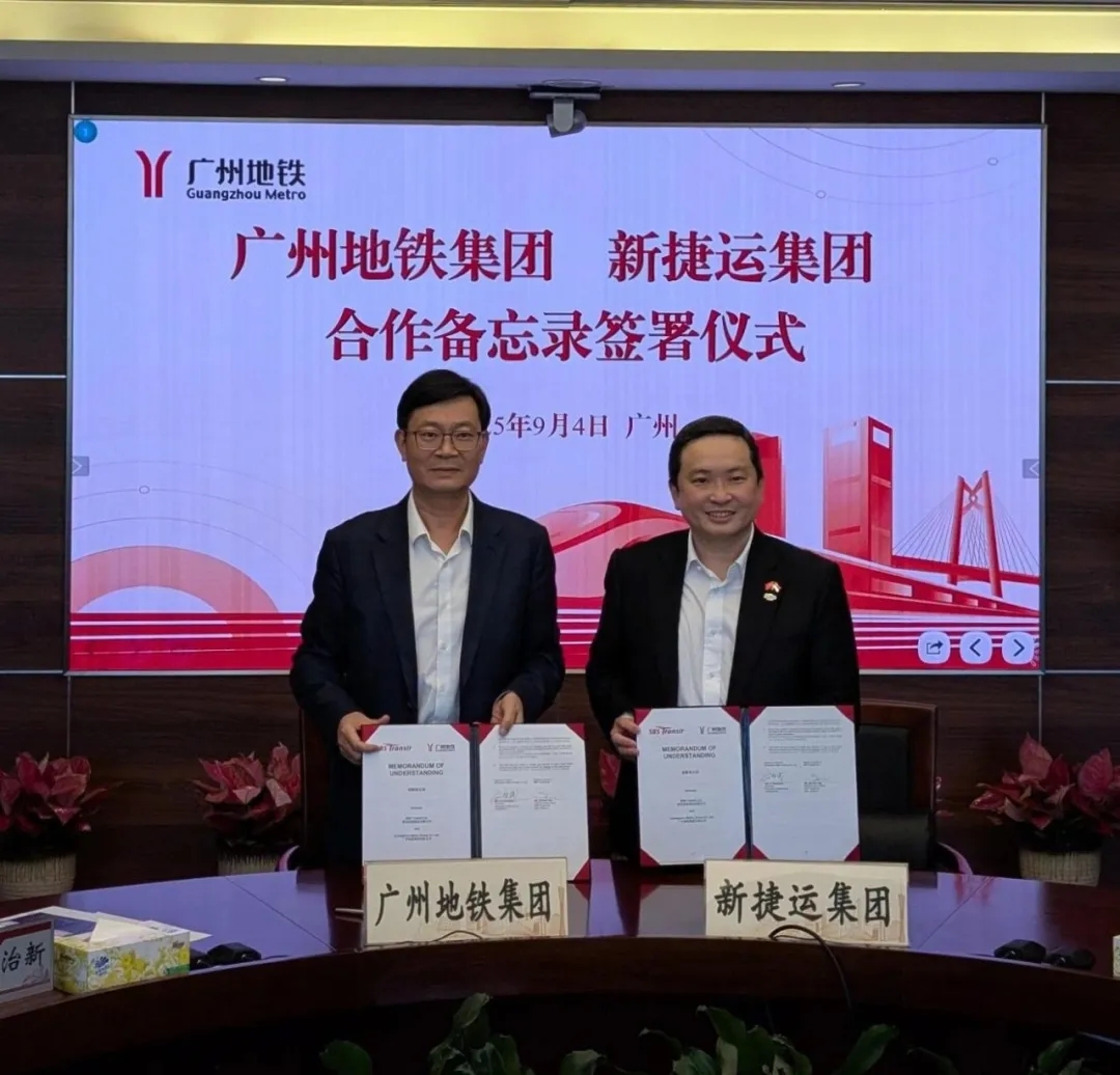 2025年9月4日,广州地铁集团与新加坡新捷运集团(SMRT)正式签署合作备忘录,开启跨境合作新篇章。此次战略合作旨在进一步推动双方在轨道交通领域的深度交流与协作,共同提升服务水准,推动行业高质量发展。