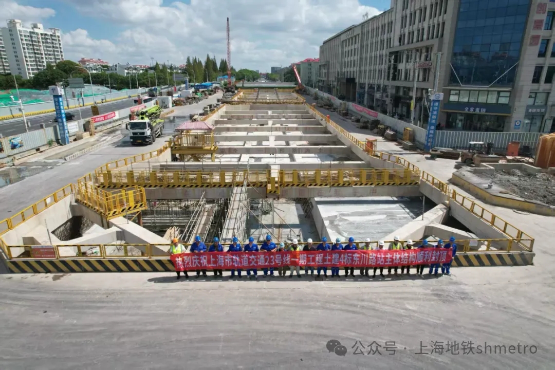施工建设|上海23号线一期东川路站主体结构顺利封顶