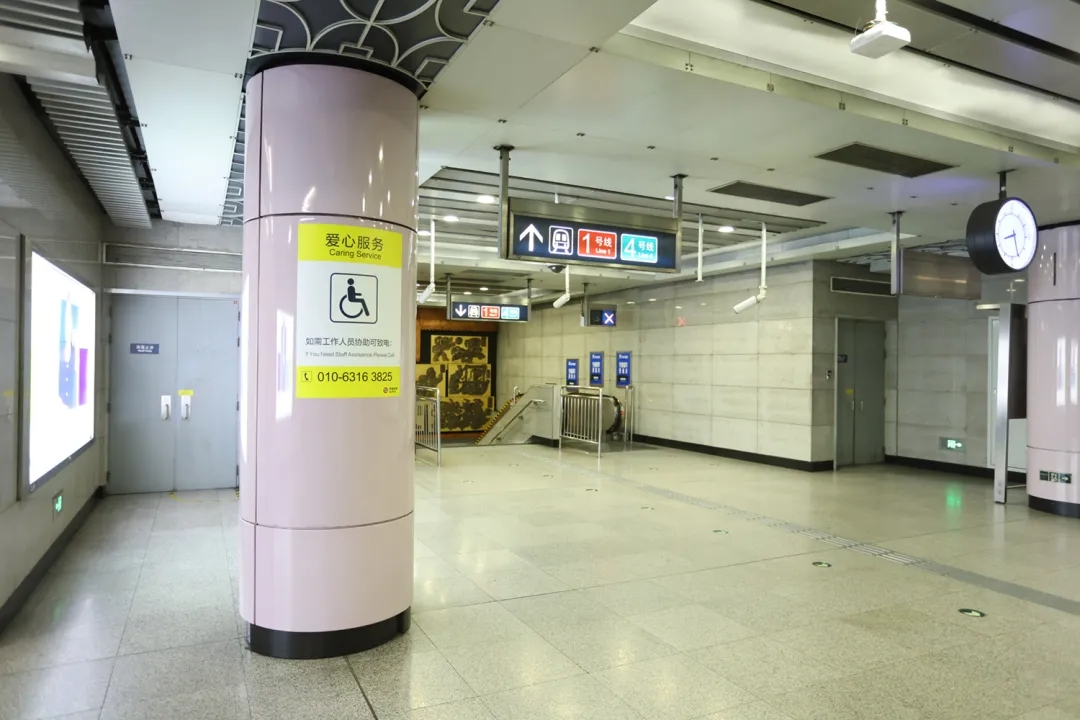 为进一步方便老年及轮椅乘客出行,京港地铁在西单站站厅立柱上新增黄色大尺寸“爱心服务指引”,清晰标注车站服务电话,确保有需要的乘客能够快速联系车站工作人员。同时,站台门醒目位置张贴“轮椅候车”标志,方便轮椅乘客查找乘车位置,便捷出行。