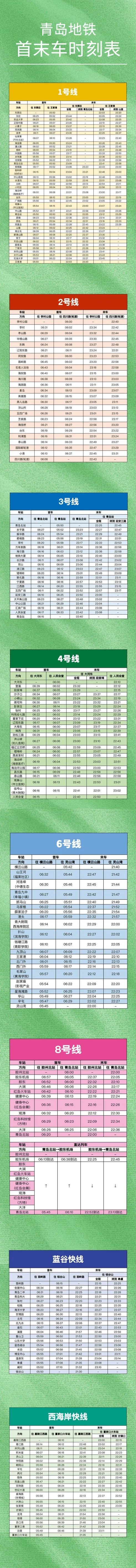 根据客流变化趋势、旅游旺季延时安排,以及对各线路首末班车乘车人数的数据采集和分析,10月9日起,青岛地铁旅游旺季延时运营结束,线网各车站首末车时间调整。您可通过青岛地铁APP、微信公众号和微博等途径获取详细首末车时刻。