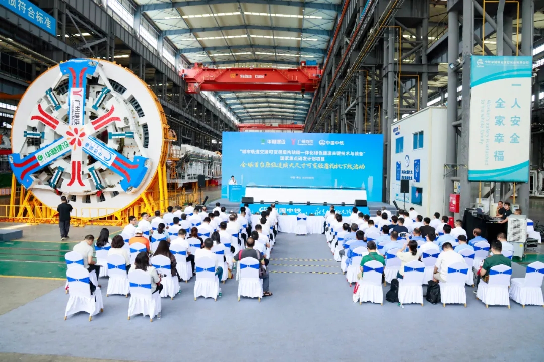近日,由广州地铁集团牵头,中铁装备等单位参与的国家重点研发计划“城市轨道交通可变径盾构站隧一体化绿色建造关键技术与装备”项目取得重大进展,项目团队自主研制的全球首台原位连续大尺寸可变径盾构机“变径一号”在佛山市顺德区顺利下线,这一成果不仅填补了“原位、连续、大尺寸可变径”盾构装备在轨道交通领域的空白,更标志着城市轨道交通建设正式迈向“小创面、低影响、微干扰”的绿色发展新阶段。 广州地铁集团有限公司党委书记、董事长刘智成,广州地铁集团有限公司副总经理王晖,广东华隧建设集团股份有限公司党委书记、董事长弓毅伟,中铁工业总经理卓普周,上海建工集团有限公司总工程师龚剑,山东大学齐鲁交通学院院长李利平,中铁装备总工程师贾连辉等领导出席下线活动。
