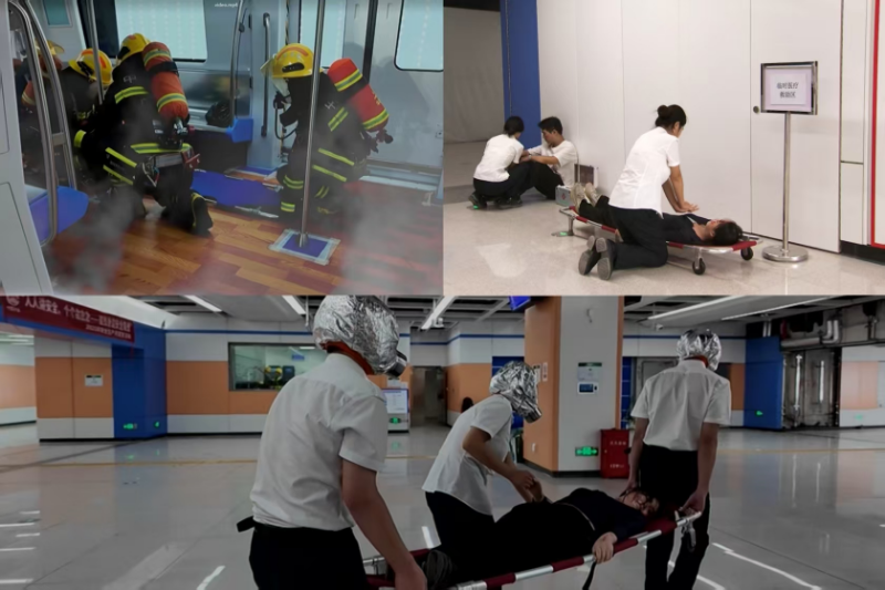 演练中,消防救援部门快速灭火,公安部门管控秩序、疏导交通,卫健部门救治转运伤员,应急、交通、南城街道及轨道运营单位各司其职,从信息上报、公交接驳到设备抢修形成闭环处置,验证了预案可操作性,提升了多部门协同作战能力。