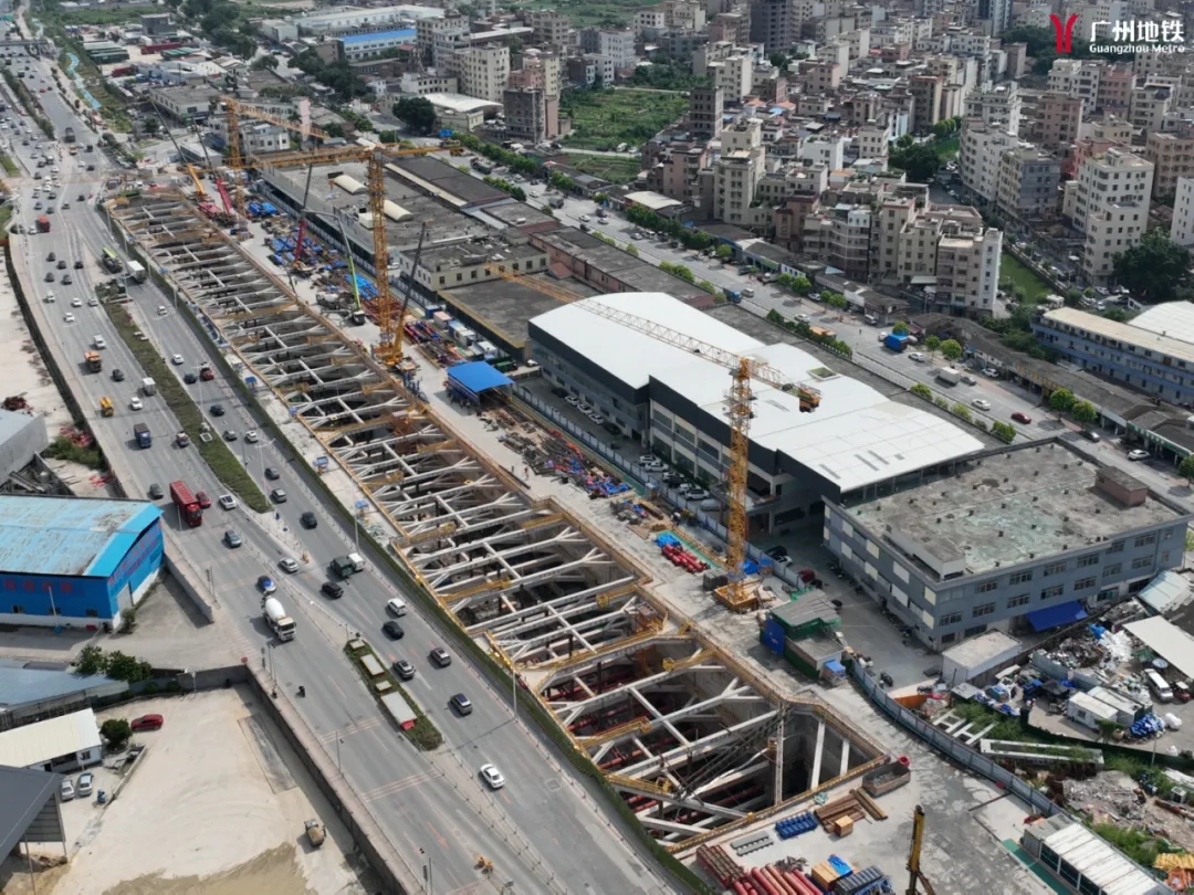 土建工程累计完成55%。广州东至冼村区间盾构段已贯通,正在进行暗挖段施工。