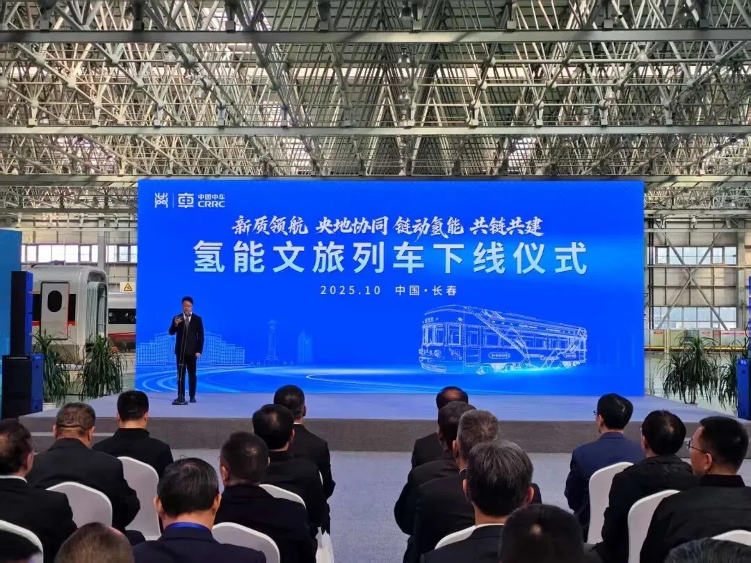 10月16日,中国中车现代产业链融通发展共链行动大会在长春举行。当天,中国首列氢能文旅列车——“氢春号”正式下线,并宣布一系列轨道交通与清洁能源领域合作项目。“氢春号”列车由中车长客研制,采用氢能动力系统,无需接触网供电,运行时的唯一产物是水,真正实现了零碳排放。此次“氢春号”的亮相,意味着氢能在轨道交通场景下的商业化从实验室走向应用。 中车长客股份公司副总经理、总工程师汪忠海介绍,“氢春号”列车能在低温环境下稳定运行,支持1至6辆灵活编组,适用于城市通勤与文旅线路。该车型可有效降低建设与运维成本,填补低运量轨道交通市场的空白。