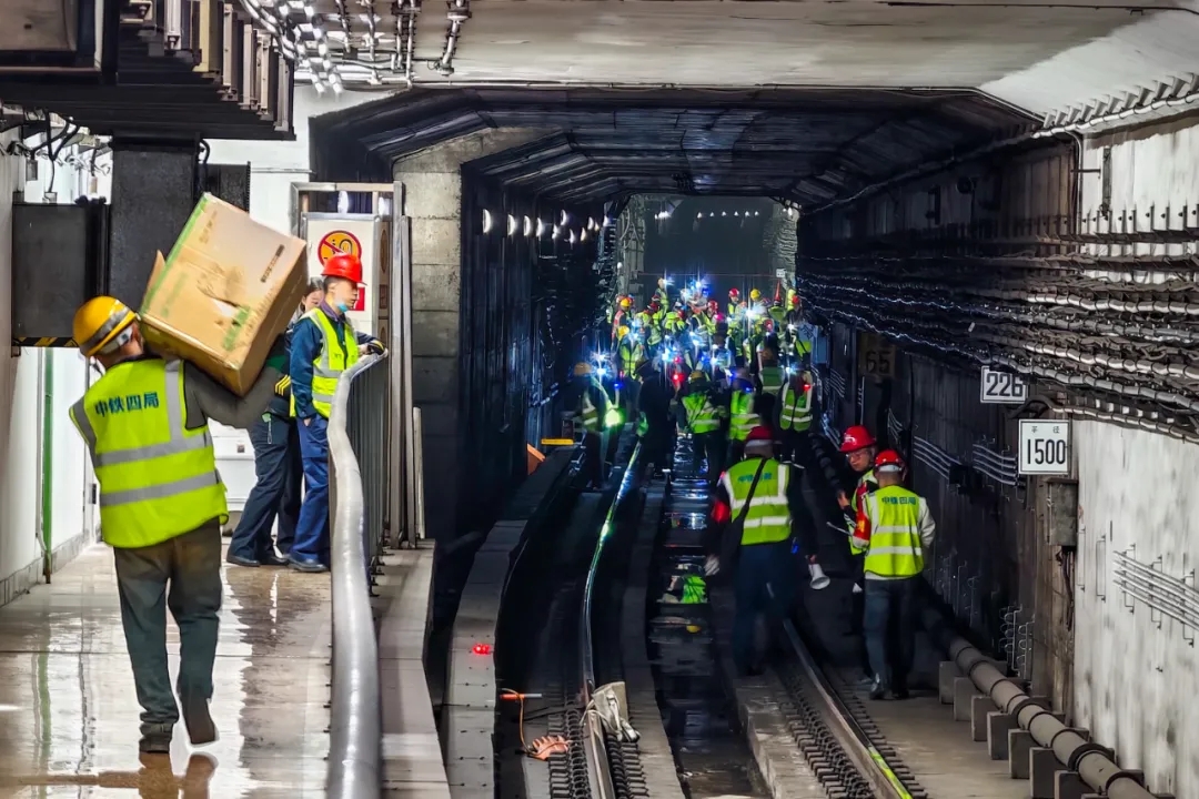 昨晚10点整,线路正式封闭,110余名施工人员陆续“钻”入地下。地铁隧道内十分狭窄,大型机械无法进场,施工人员只能手持电动扳手、切割工具,分别将30余根轨连线、4组转辙机、20余根道岔轨件、160套扣件成功拆除,并将旧道岔搬出。现场设备轰鸣、火花四溅,场面震撼。