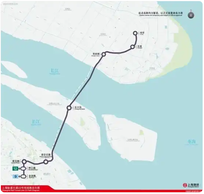 截至 2025 年 10 月 25 日,轨道交通 22 号线(崇明线)工程已实现全部车站主体结构封顶(共 8 座),盾构隧道全部贯通(共 28 条隧道,含越江大盾构南港和北港隧道),旁通道全面开工。轨道铺设也已分段开工,大盾构隧道已全部移交铺轨。长兴岛主变、陈家镇主变 2 座新建主变土建完成结构封顶,长兴岛主变和金桥主变开始设备安装,2 座停车场主要库房也已封顶。