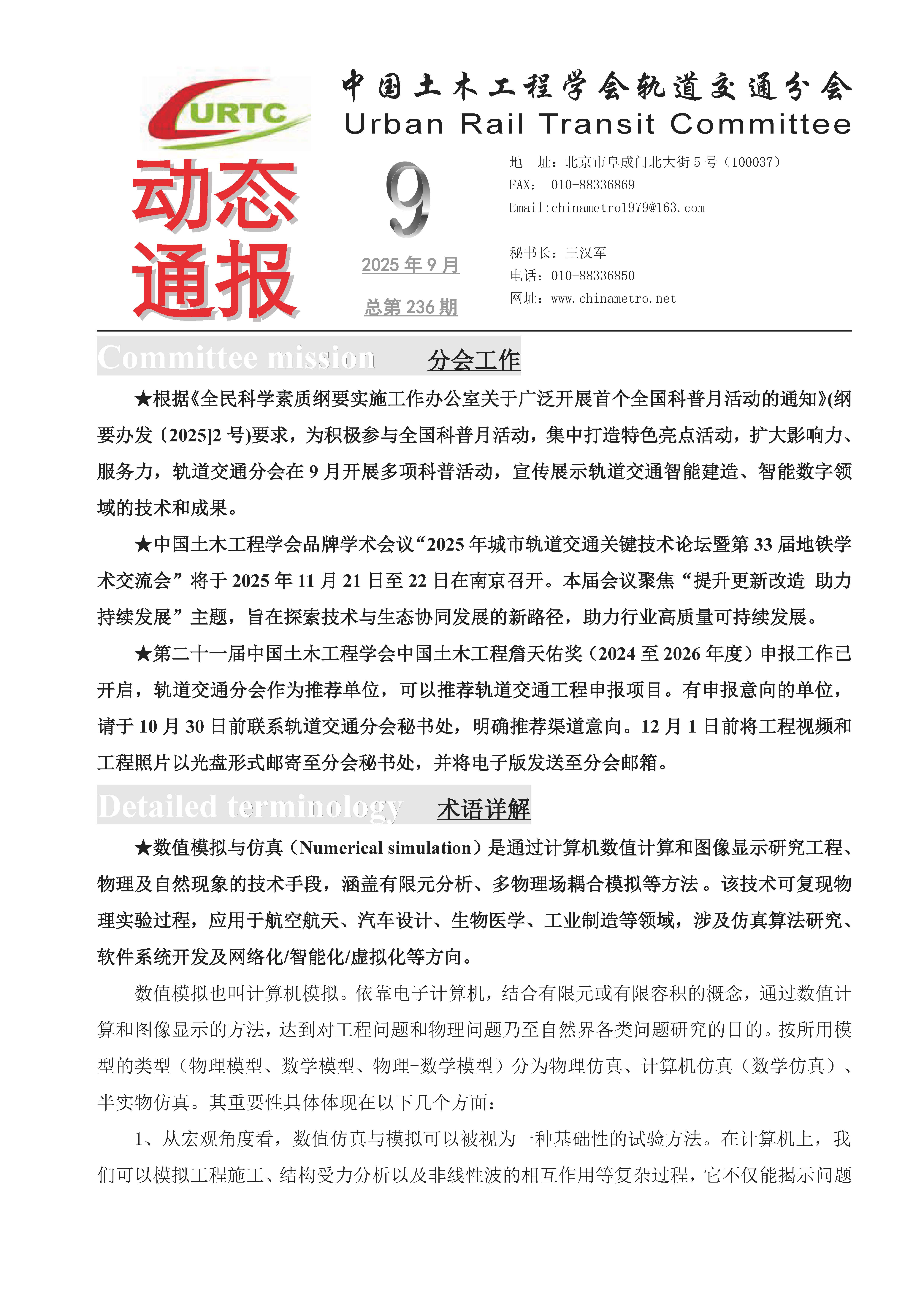 轨道交通分会动态通报(2025-9)
