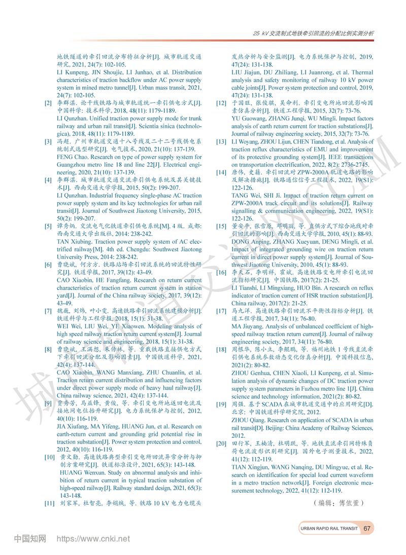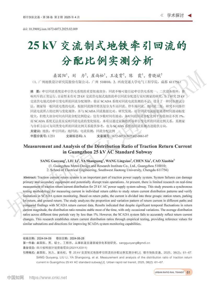 25_kV交流制式地铁牵引回流的分配比例实测分析