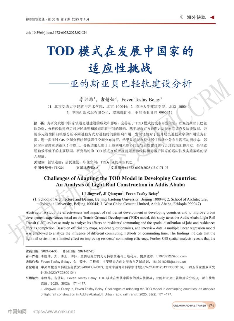 TOD模式在发展中国家的适应性挑战——亚的斯亚贝巴轻轨建设分析
