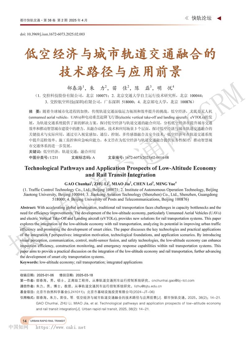 低空经济与城市轨道交通融合的技术路径与应用前景