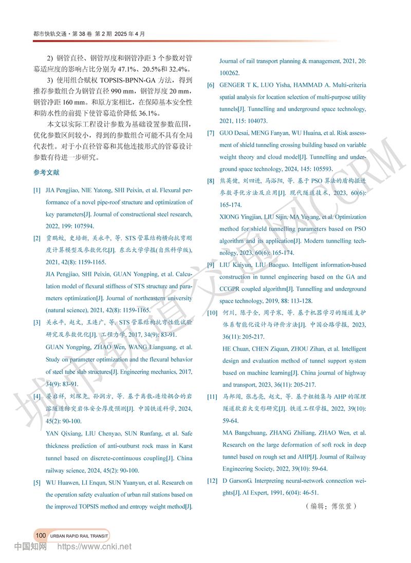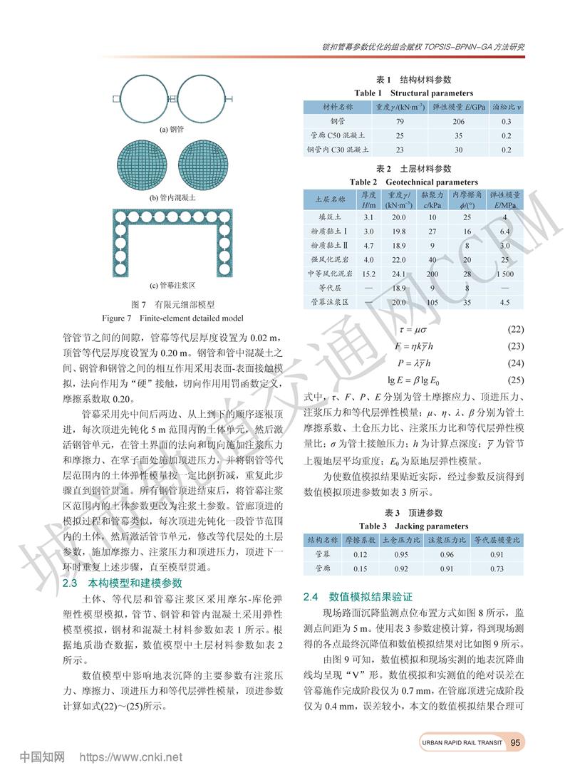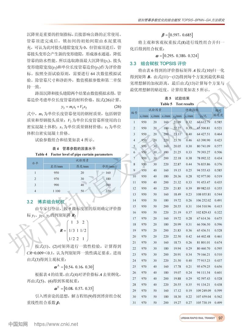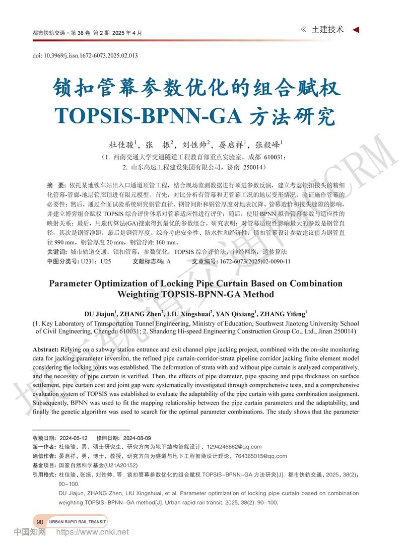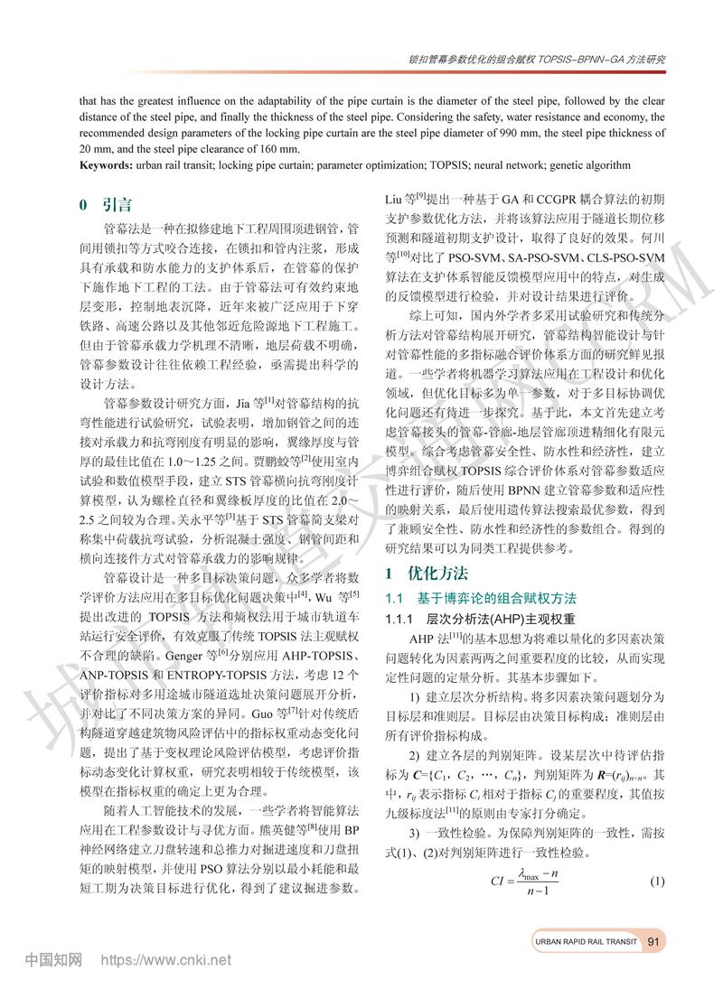 锁扣管幕参数优化的组合赋权TOPSIS-BPNN-GA方法研究