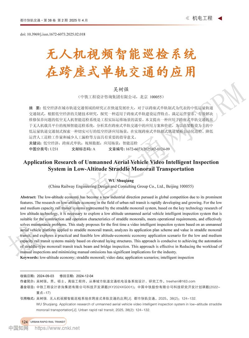 无人机视频智能巡检系统在跨座式单轨交通的应用