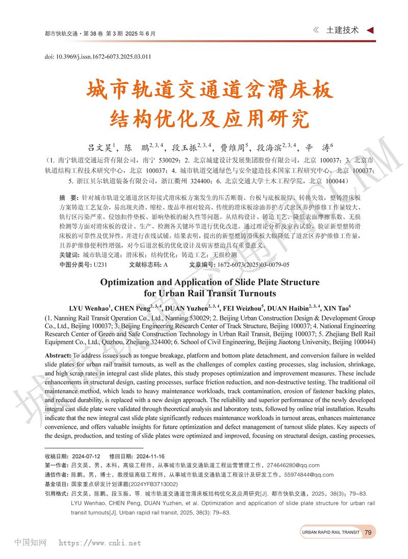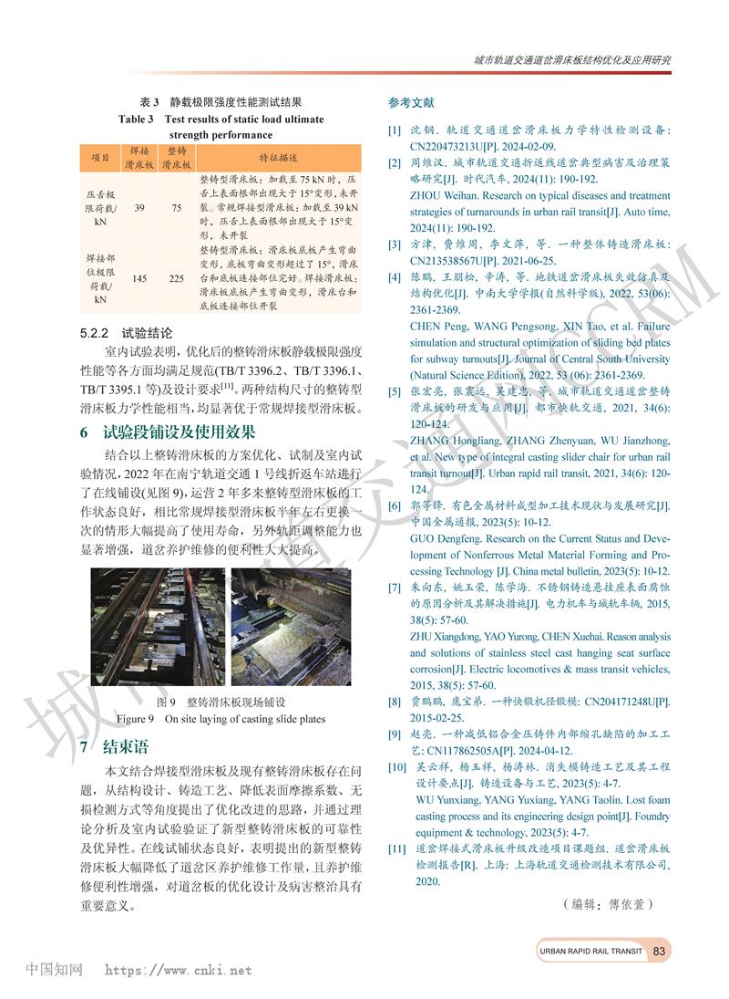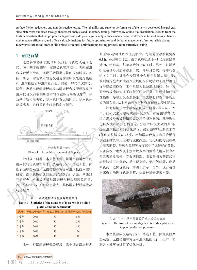 城市轨道交通道岔滑床板结构优化及应用研究