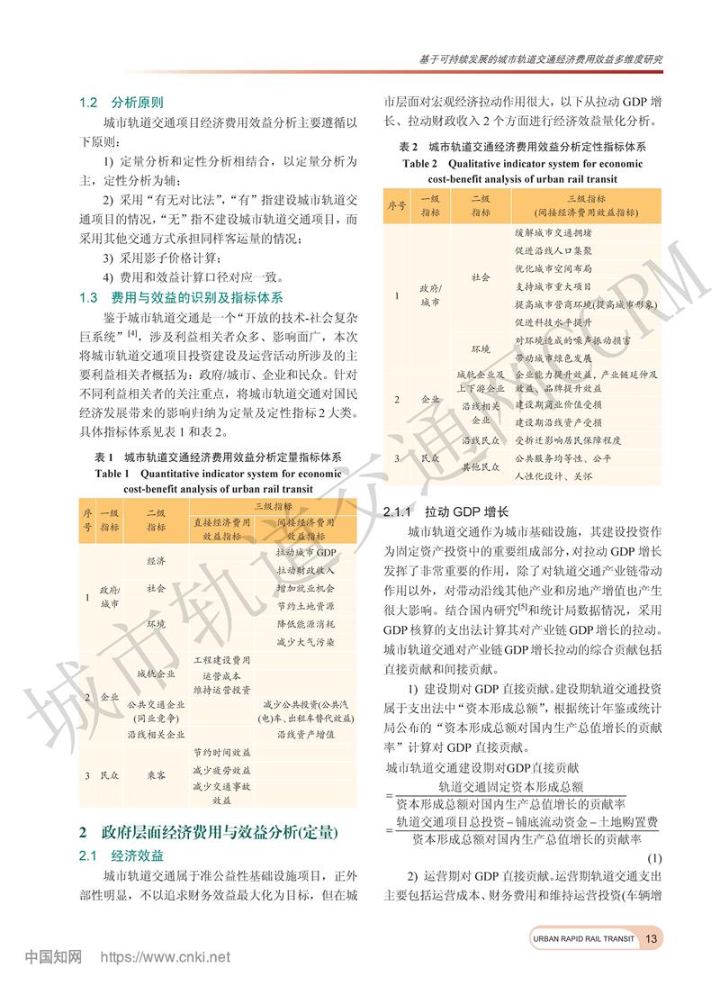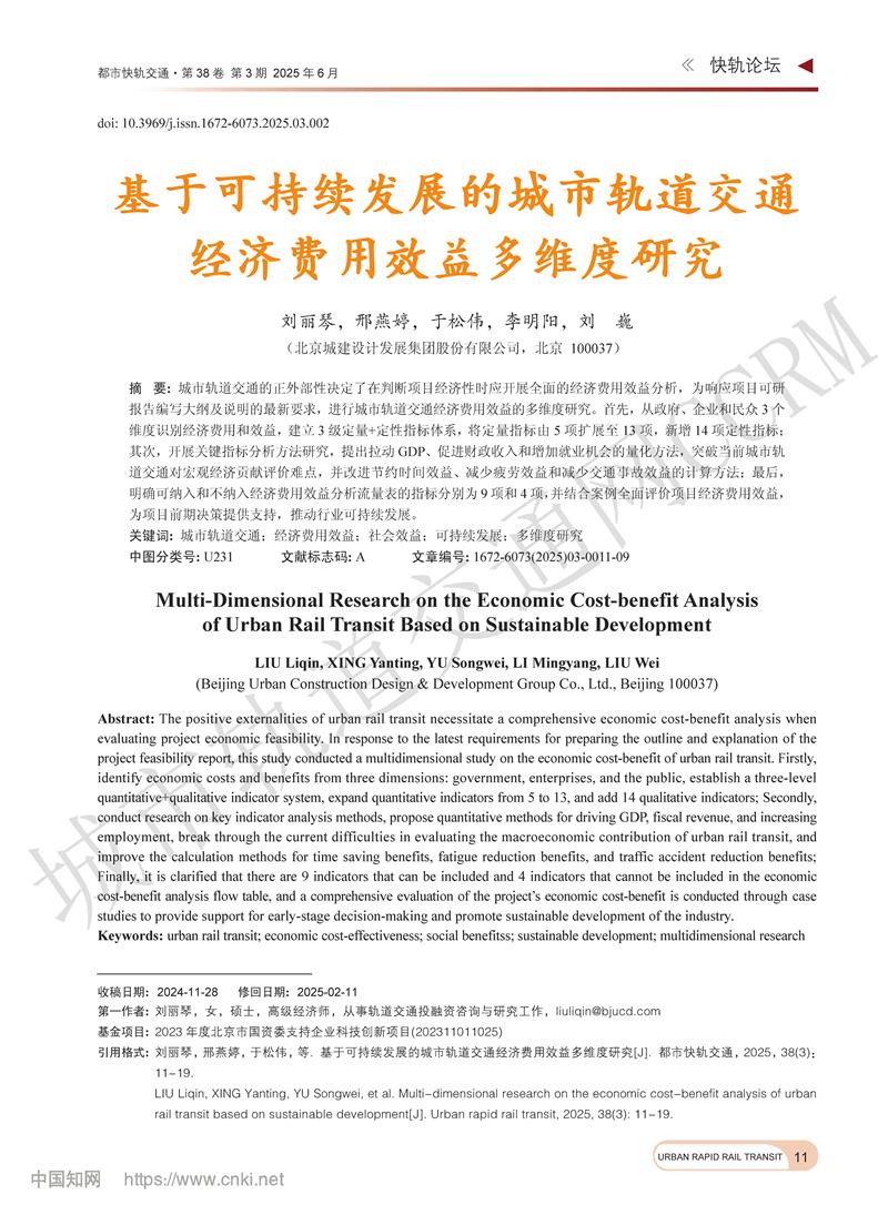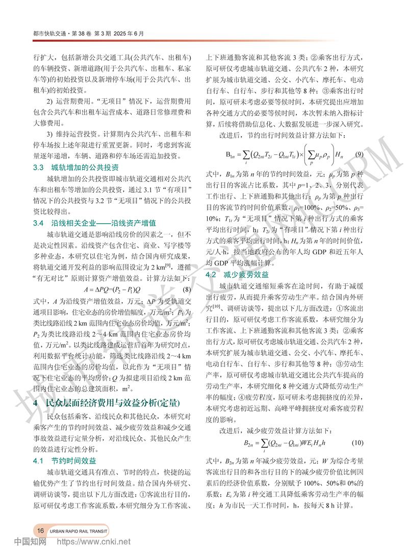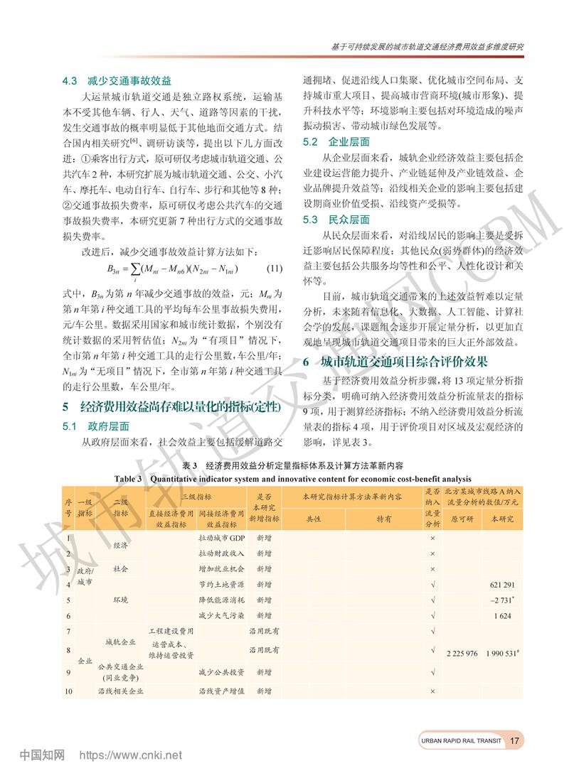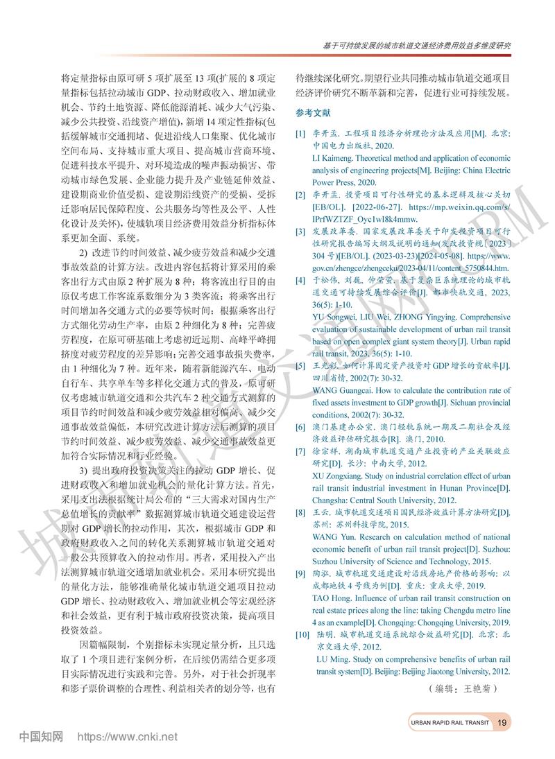 基于可持续发展的城市轨道交通经济费用效益多维度研究