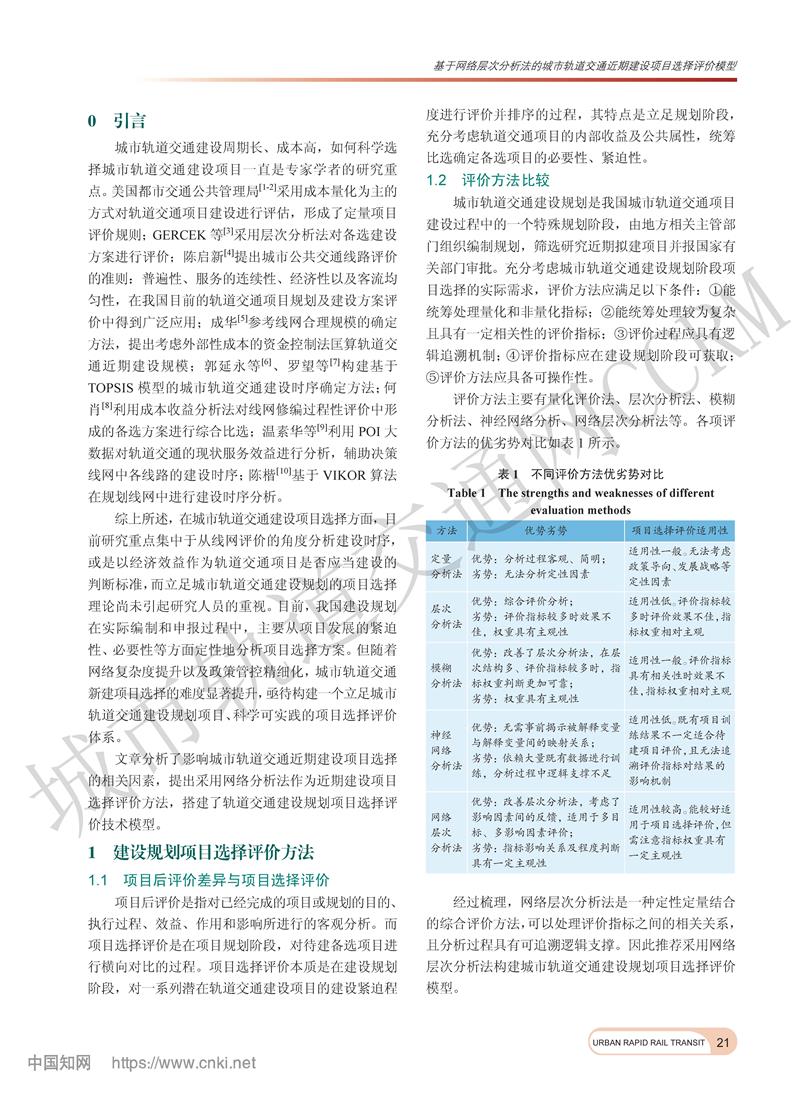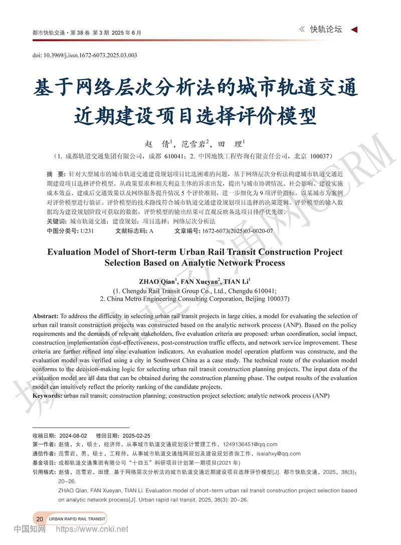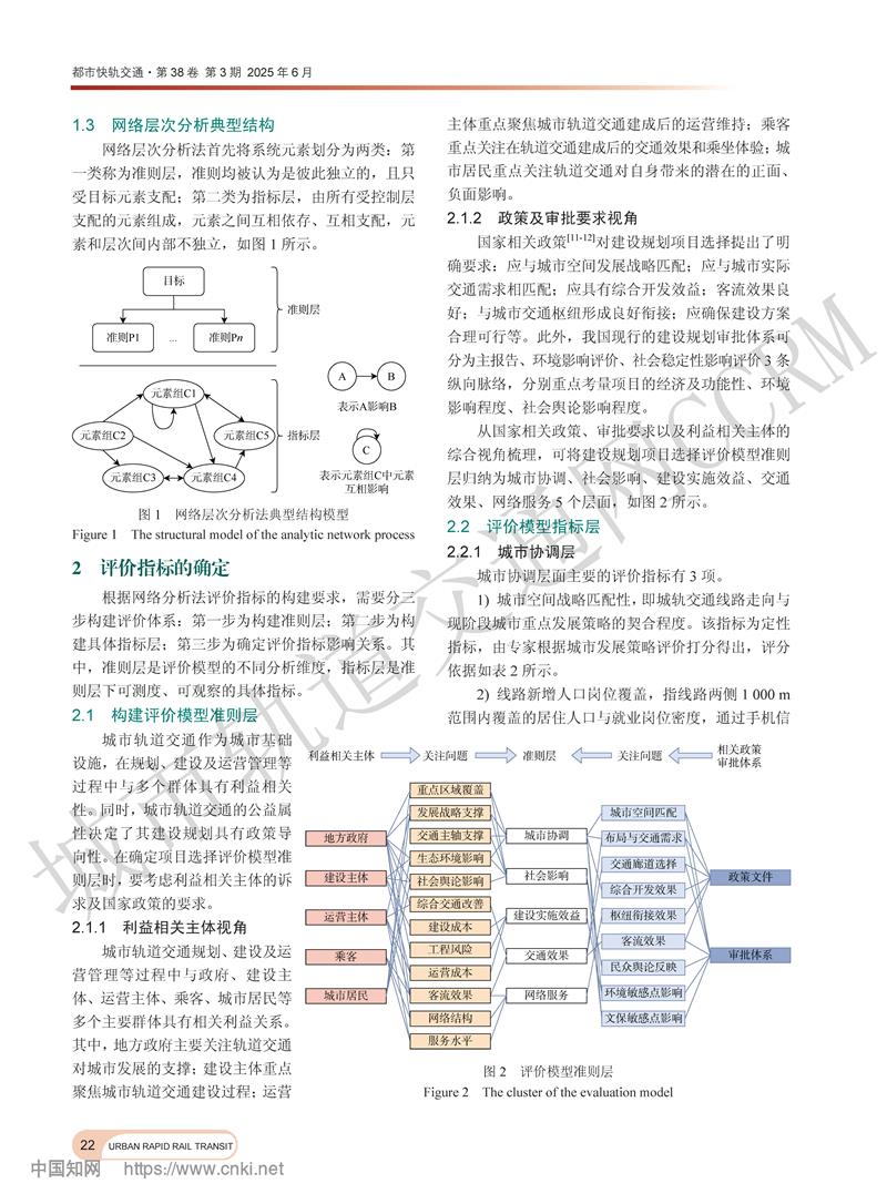 基于网络层次分析法的城市轨道交通近期建设项目选择评价模型