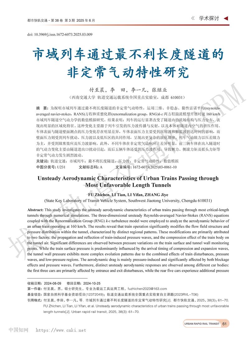 市域列车通过最不利长度隧道的非定常气动特性研究