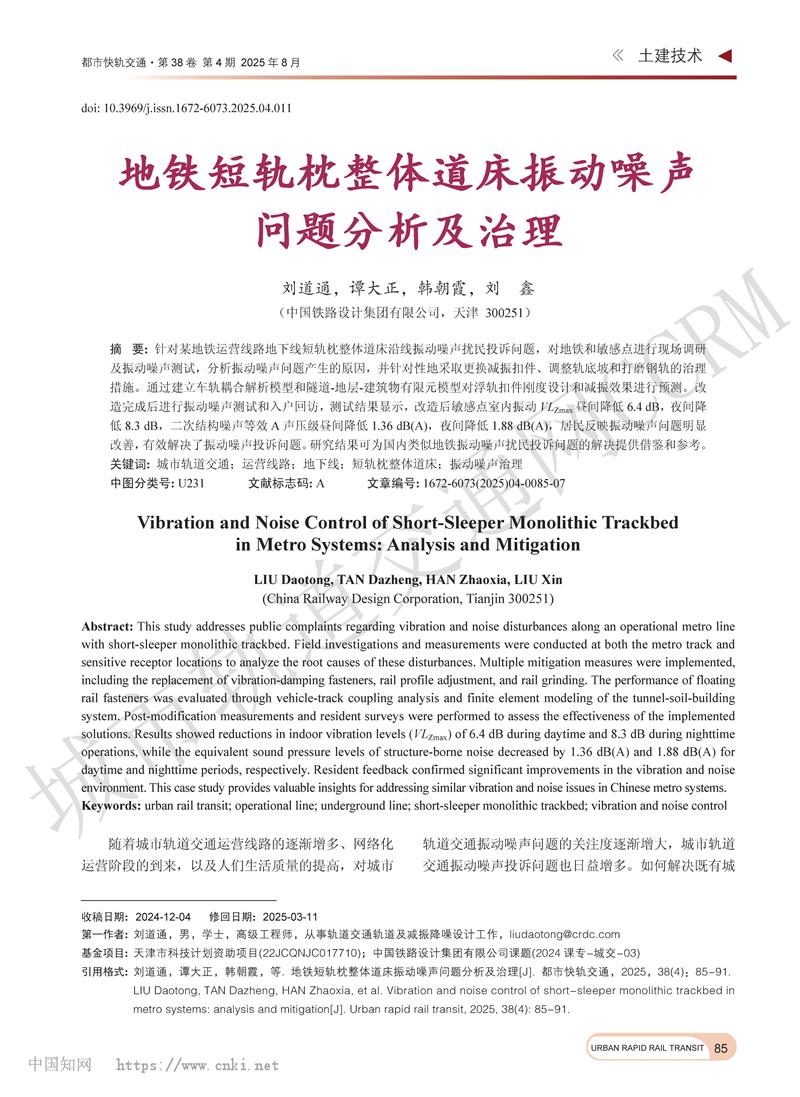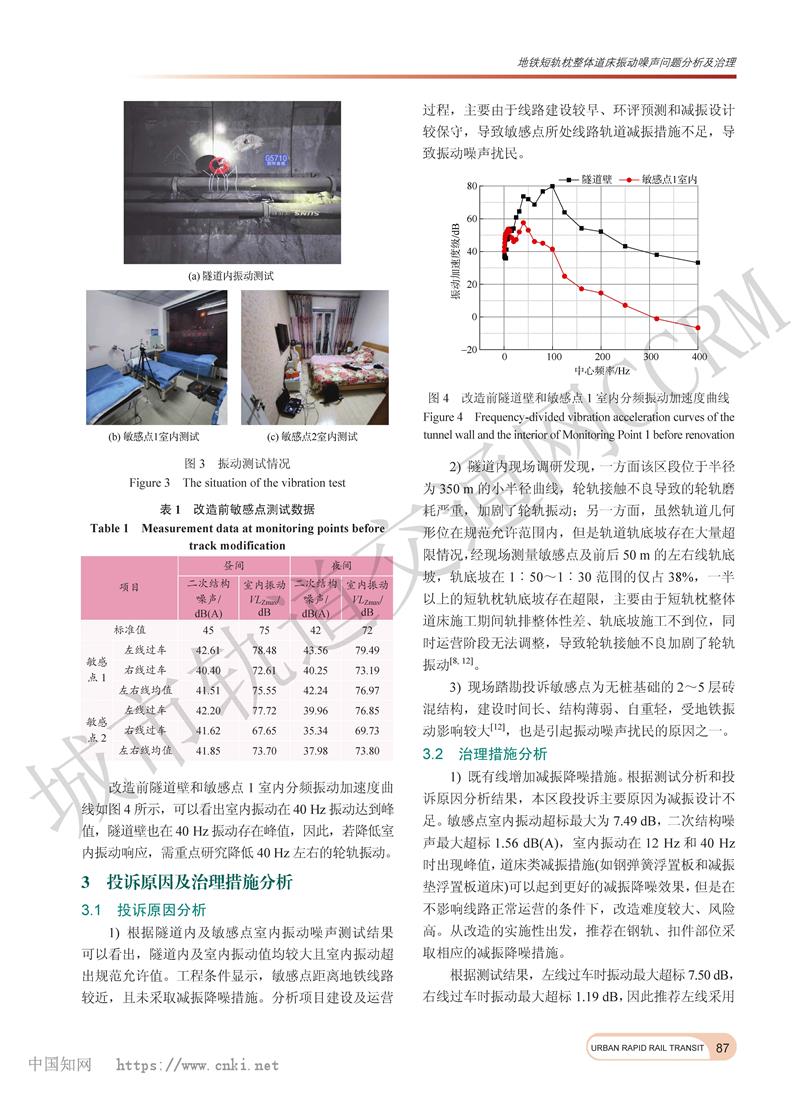 地铁短轨枕整体道床振动噪声问题分析及治理