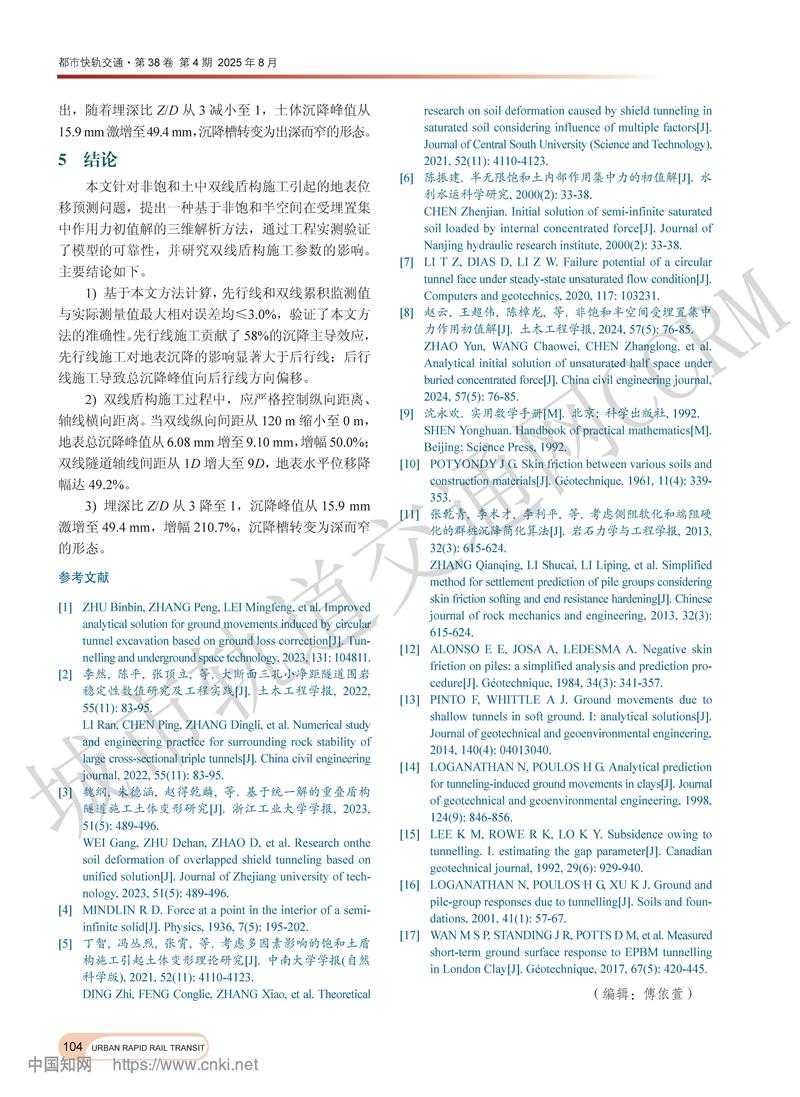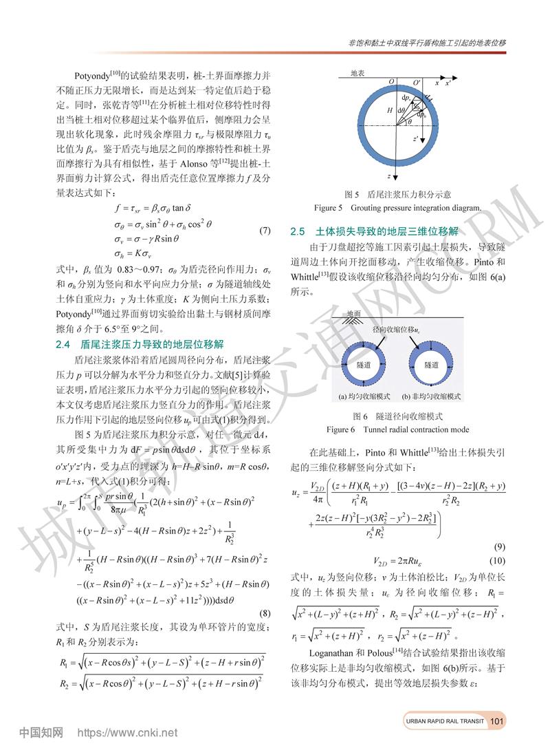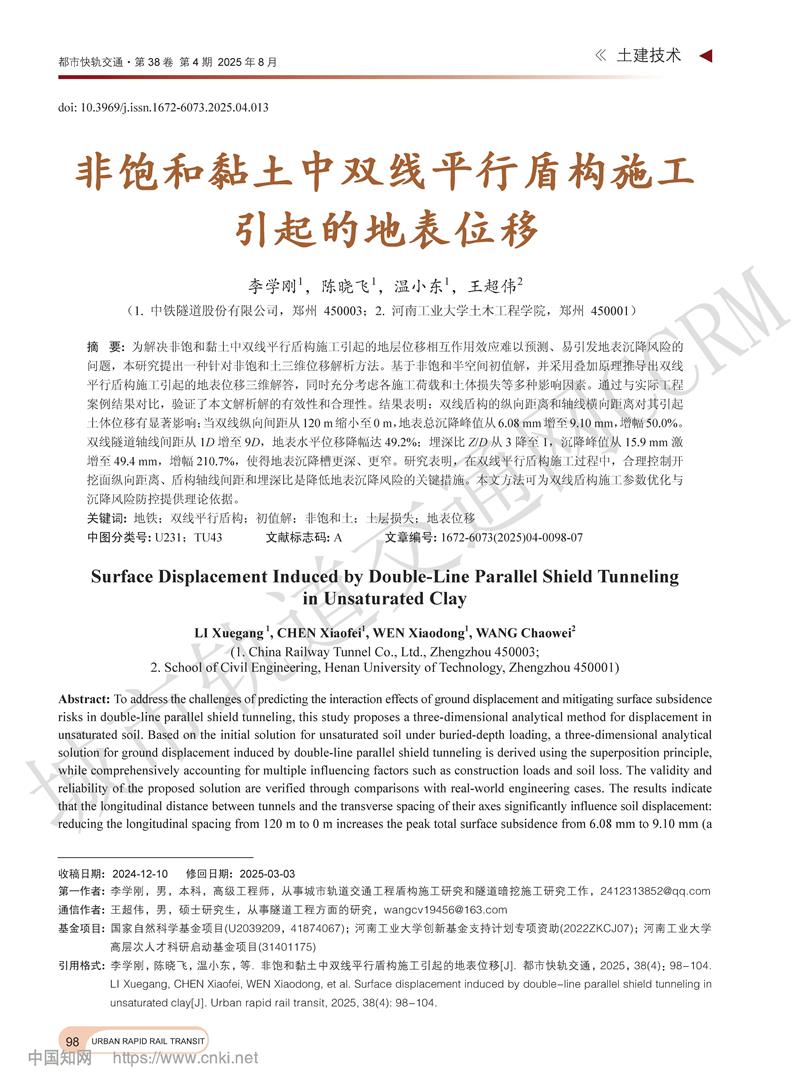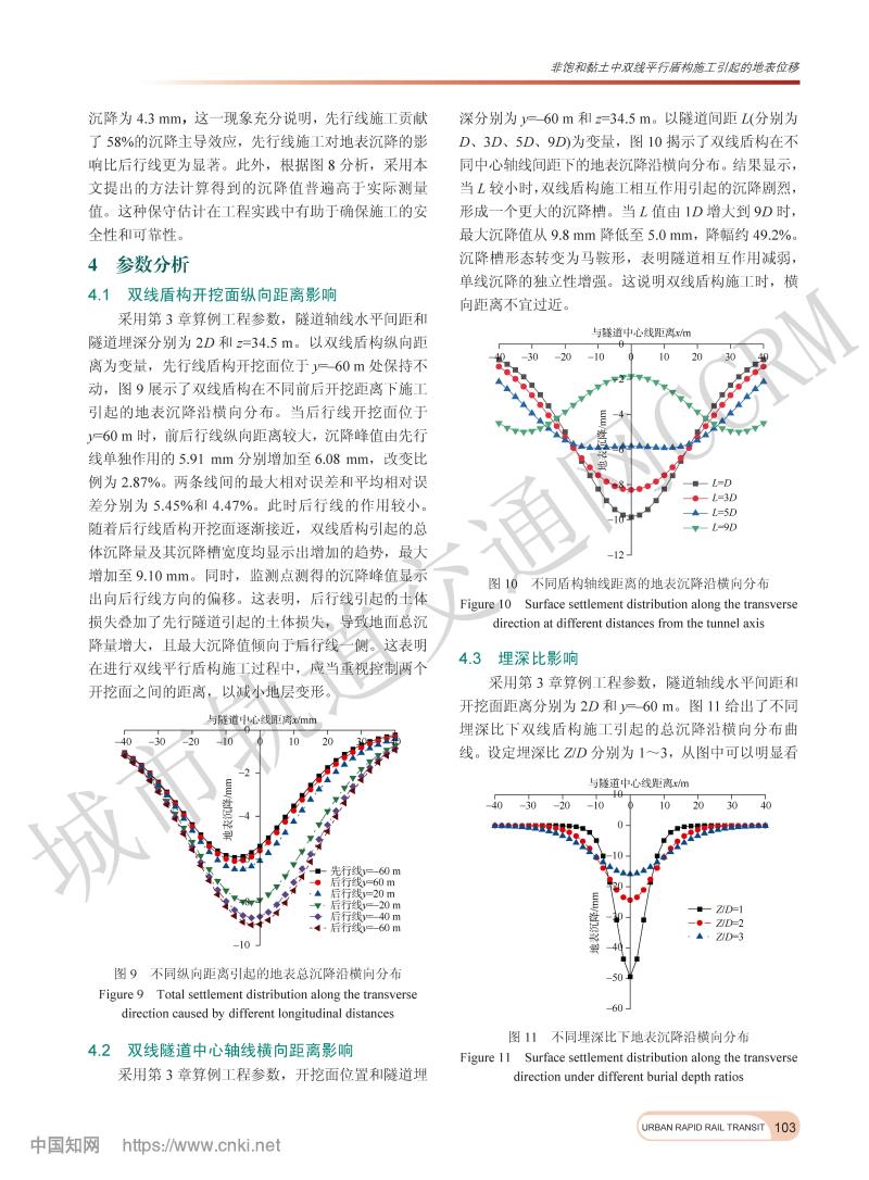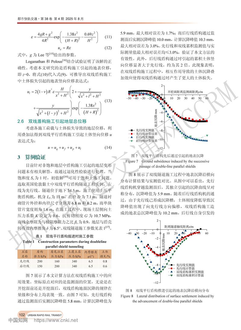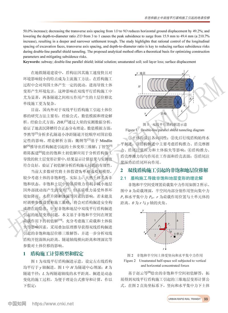 非饱和黏土中双线平行盾构施工引起的地表位移