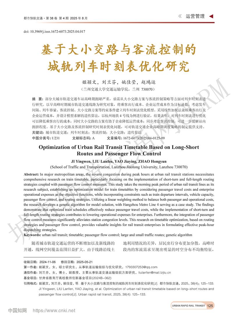 基于大小交路与客流控制的城轨列车时刻表优化研究