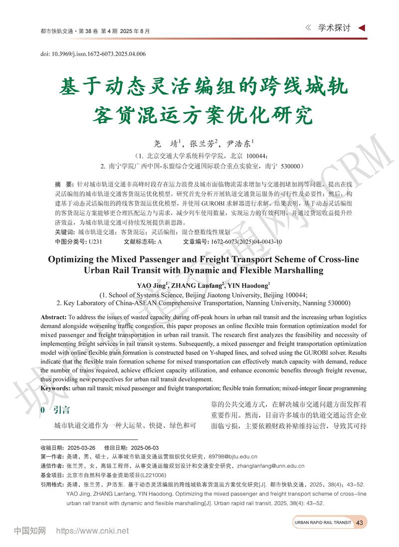 基于动态灵活编组的跨线城轨客货混运方案优化研究