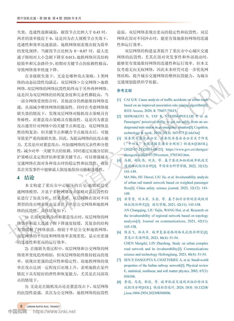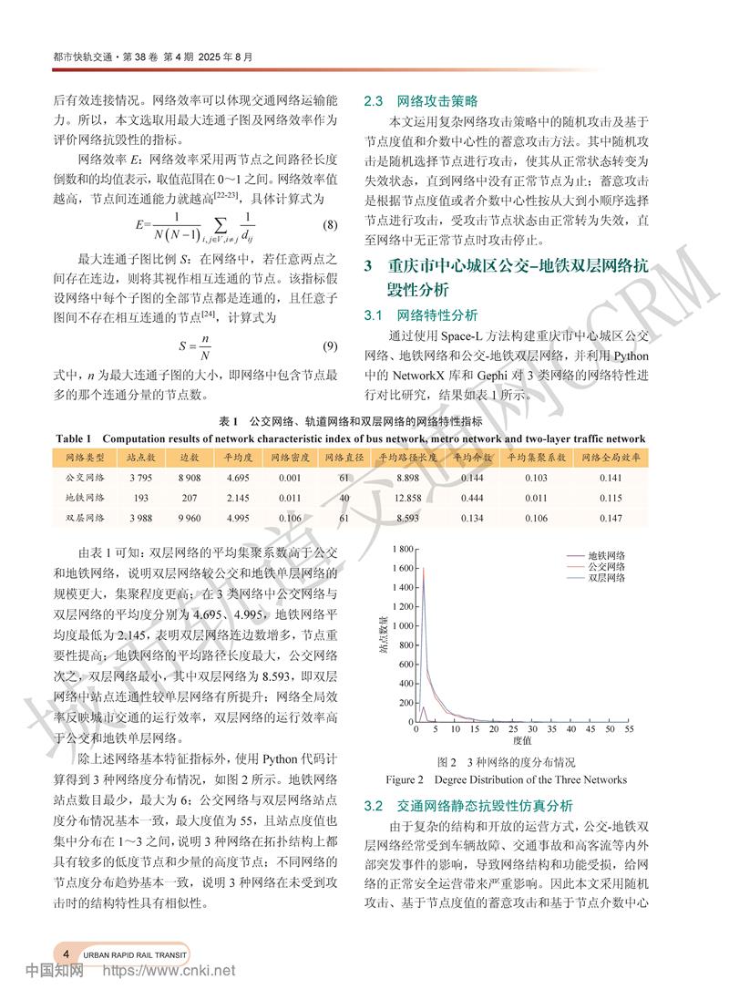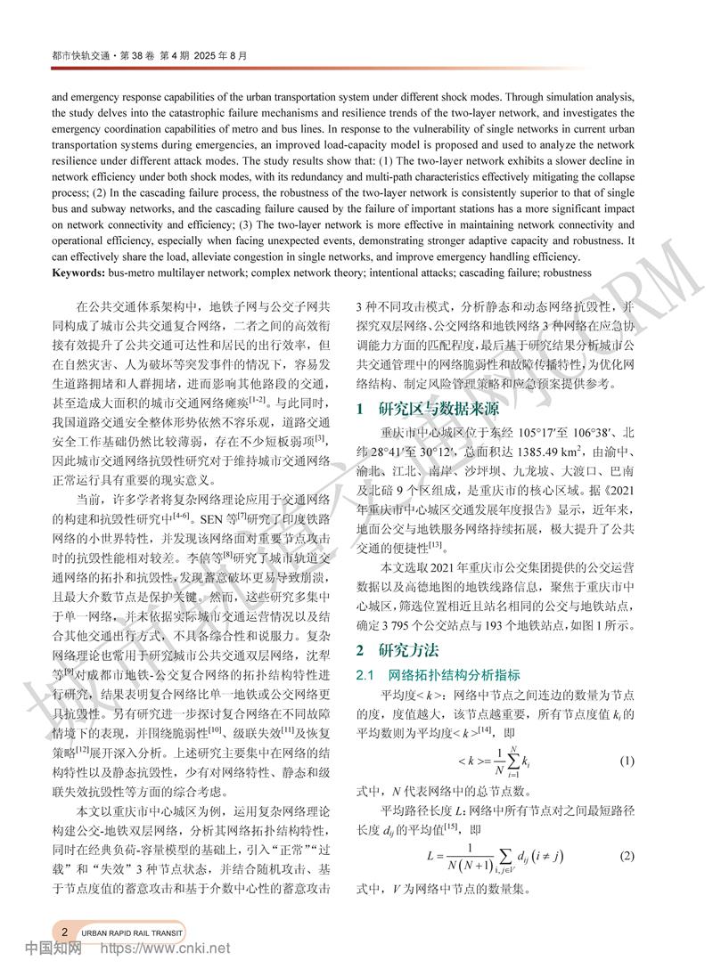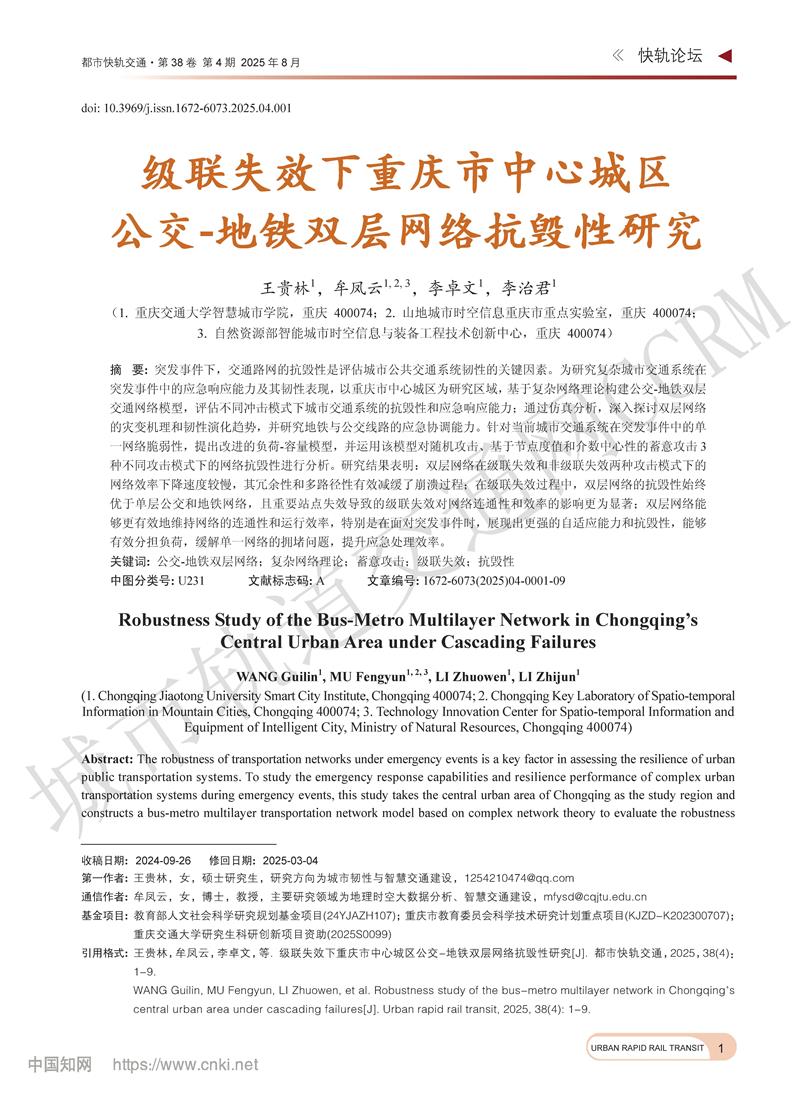 级联失效下重庆市中心城区公交-地铁双层网络抗毁性研究