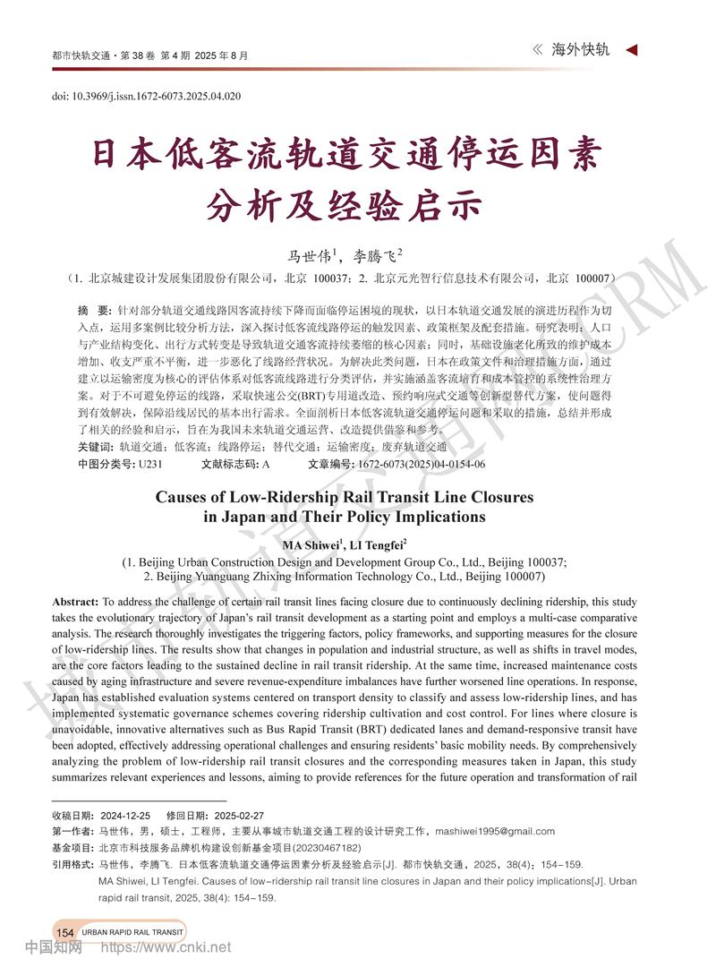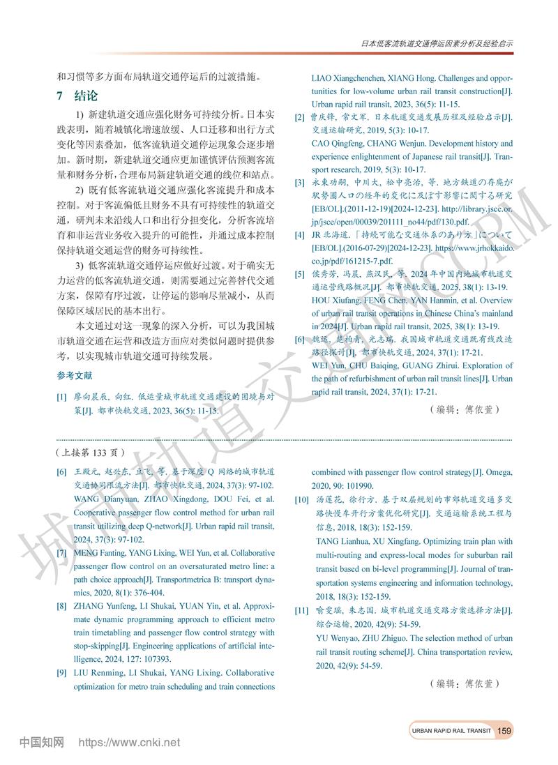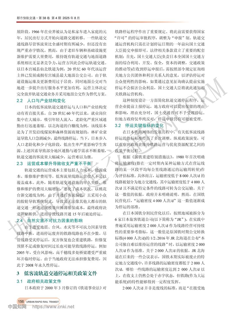 日本低客流轨道交通停运因素分析及经验启示